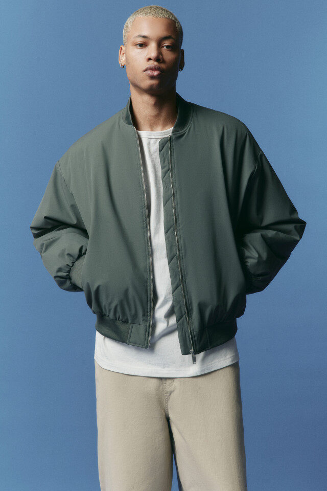 Куртка-бомбер свободная с трикотажным воротником