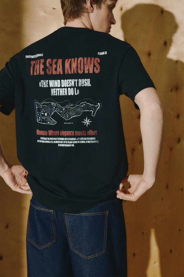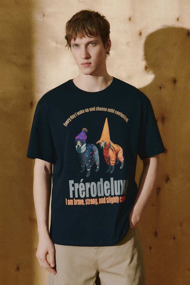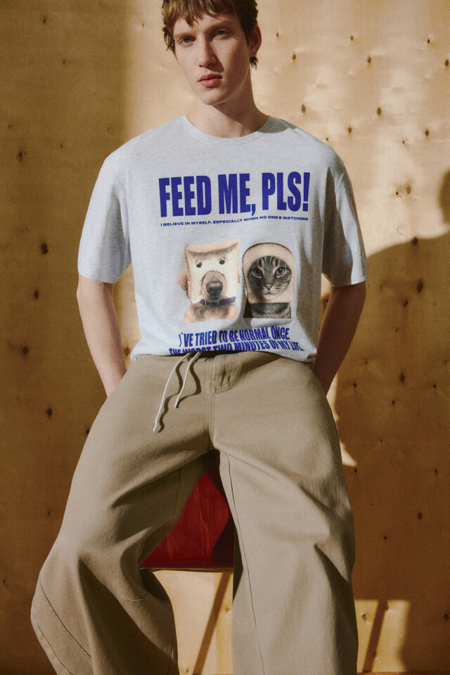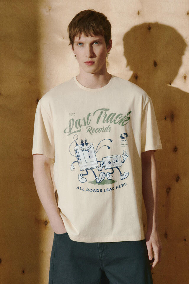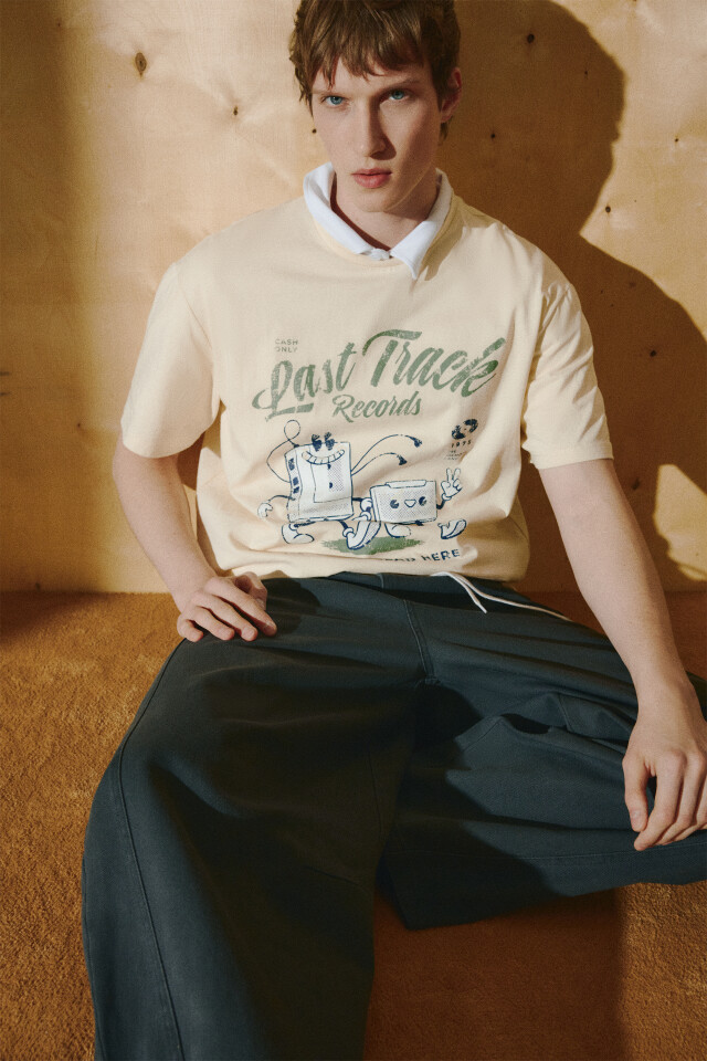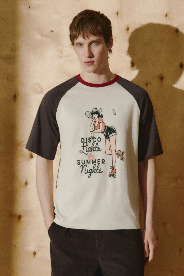 Футболка с принтом и контрастным воротником