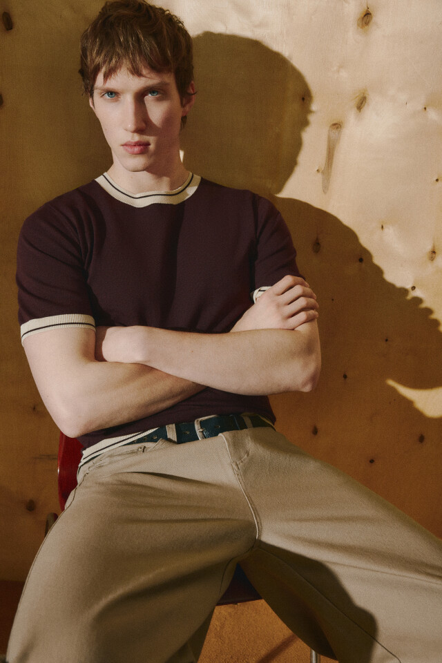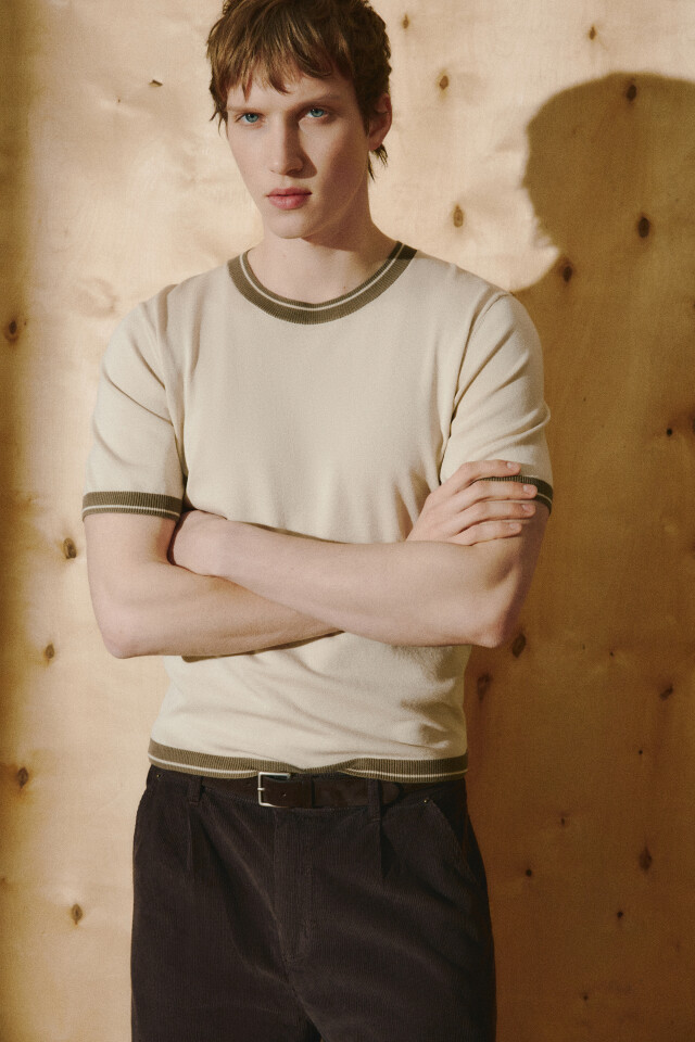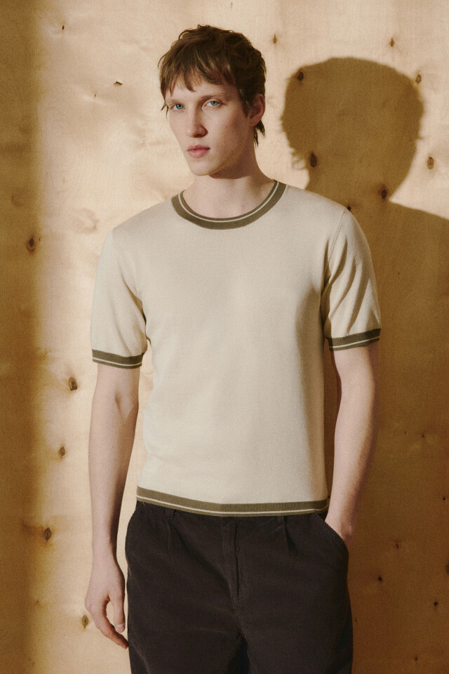 Футболка приталенная вязаная с контрастной окантовкой