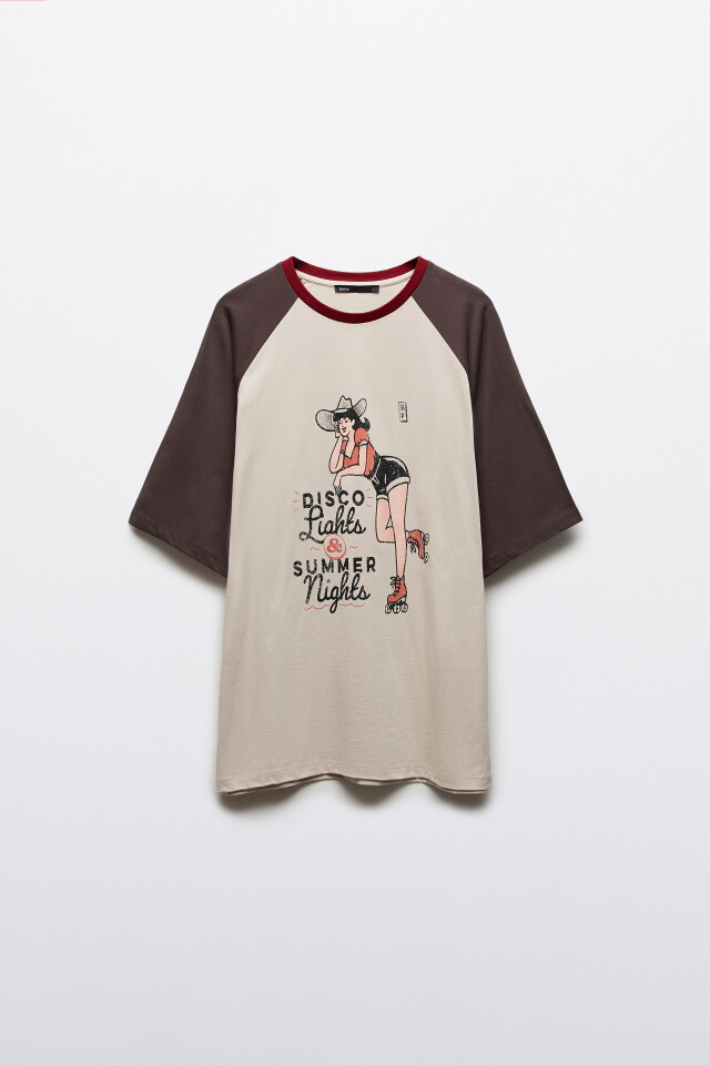 Футболка хлопковая с принтом и контрастными рукавами