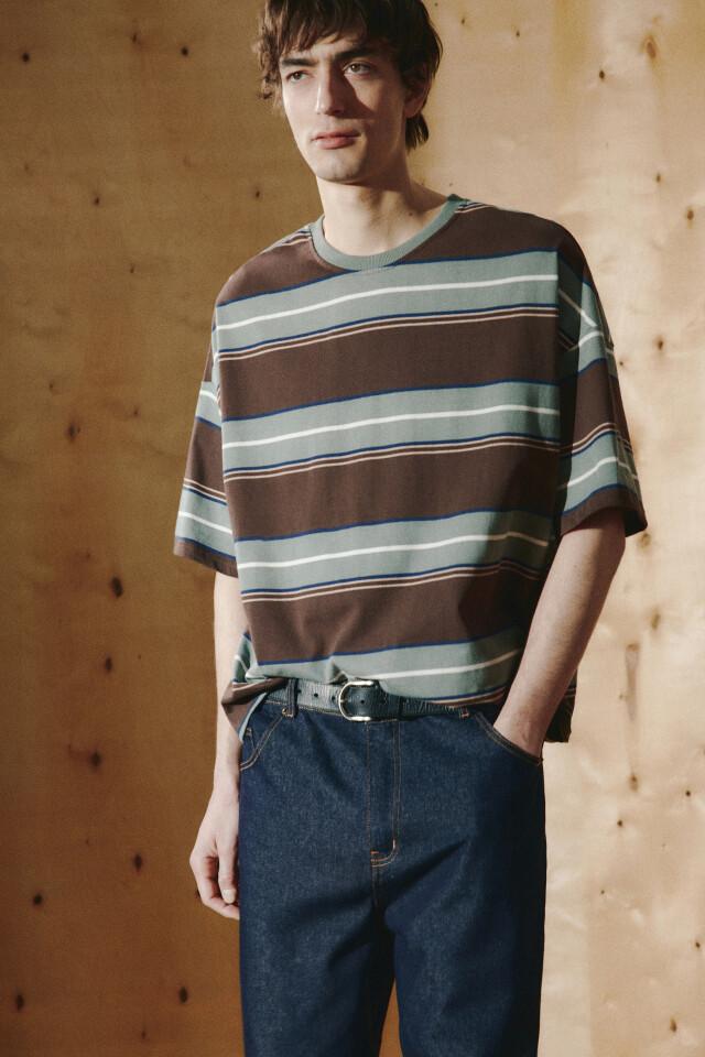 • А если хочешь создать более спокойный образ, например, для летних походов в офис или на свидание, обрати внимание на футболки-поло. Они выглядят изящно и сдержанно, подходят как к джинсам, так и к классическим брюкам.