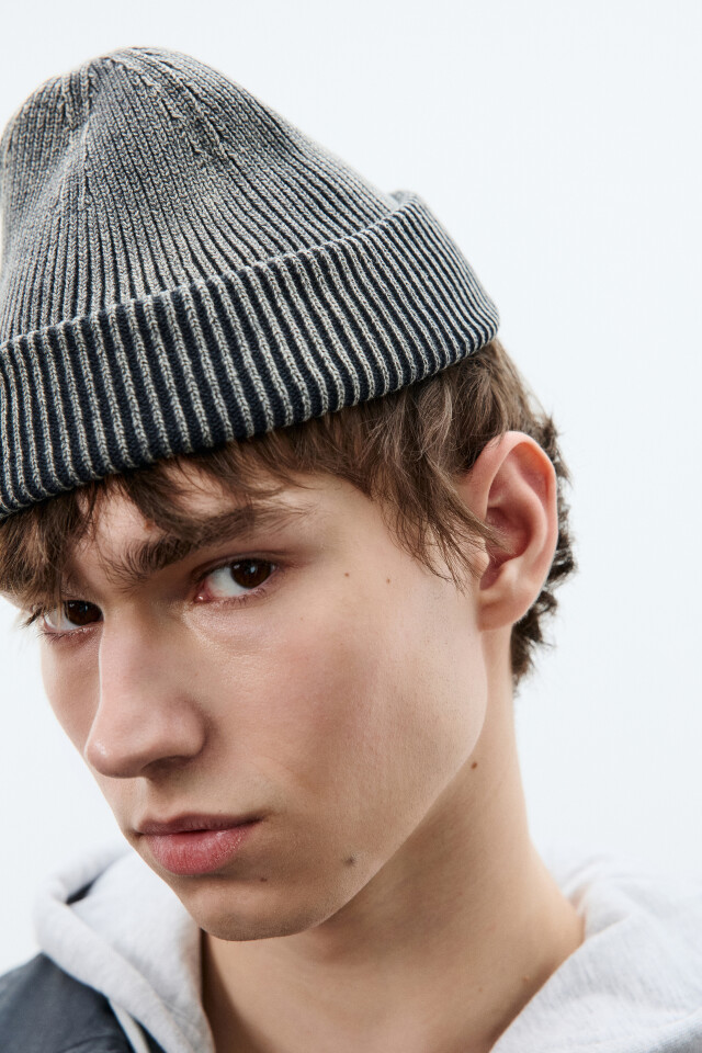 Шапка вязаная в рубчик утепленная