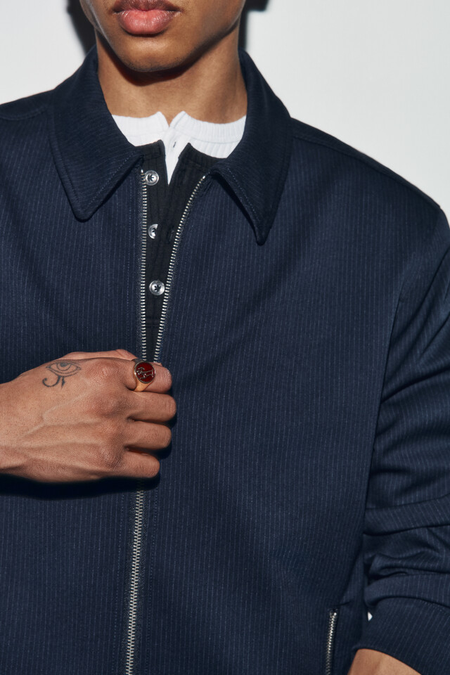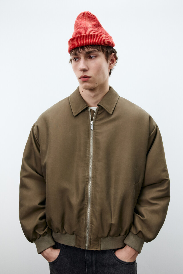 Свитшот из футера с воротником-стойкой на кнопках