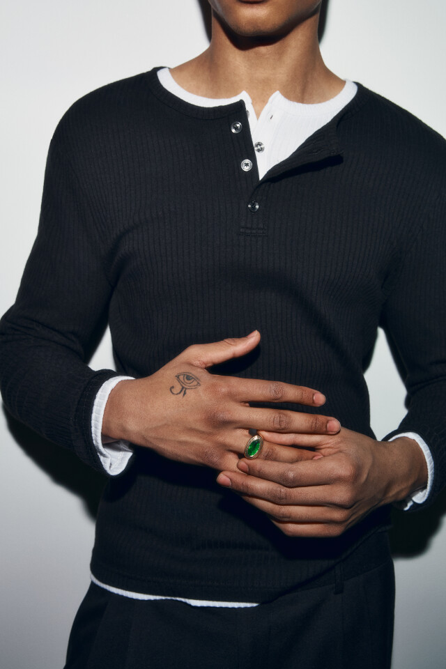 Лонгслив хенли облегающий в рубчик