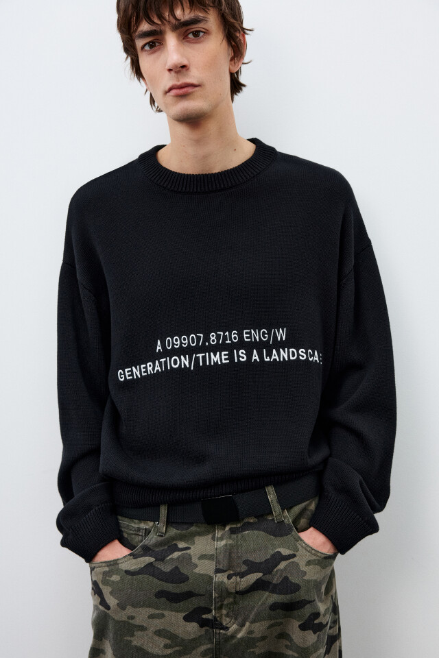 Шапка-бини вязаная с отворотом и принтом-надписью