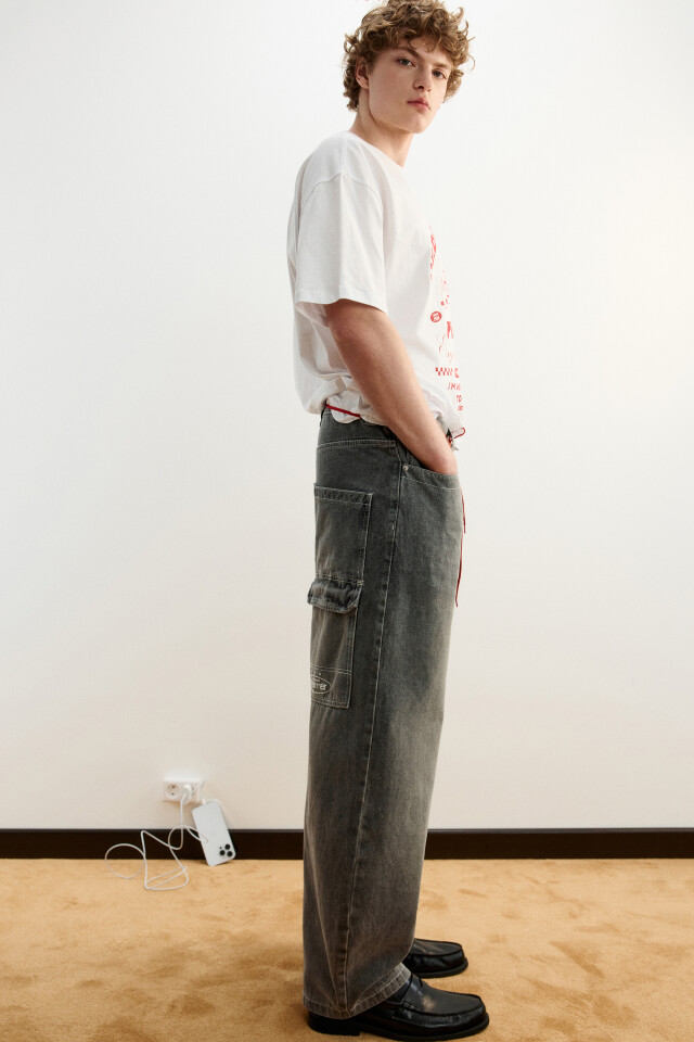 Джинсы багги с накладными карманами