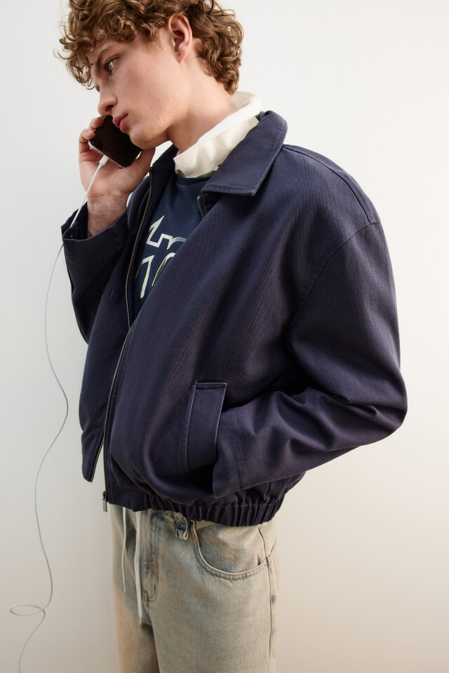Куртка джинсовая с отложным воротником на молнии
