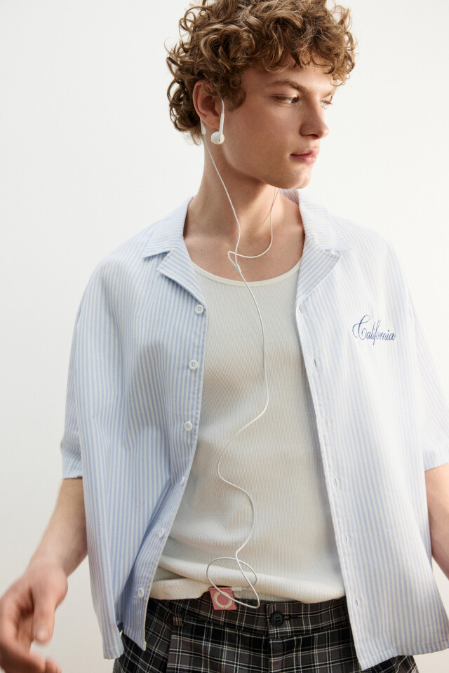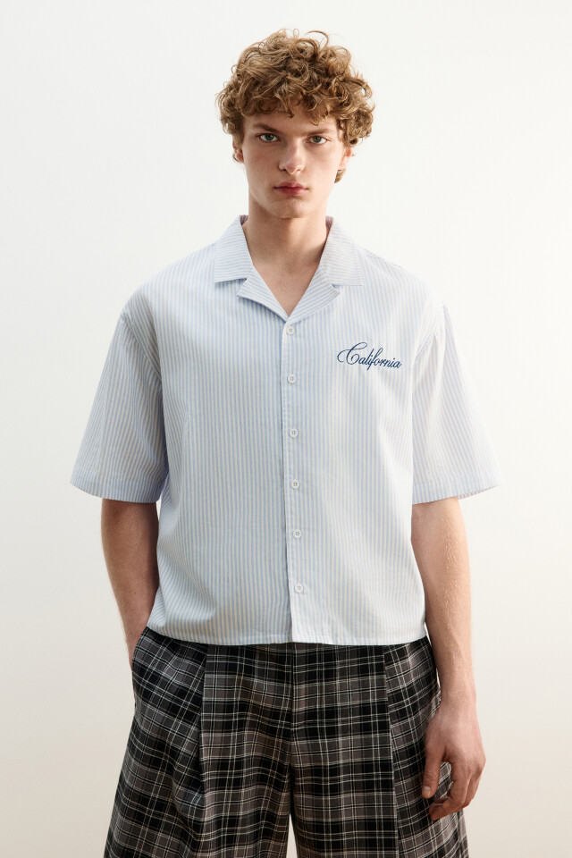 Рубашка хлопковая в полоску с коротким рукавом