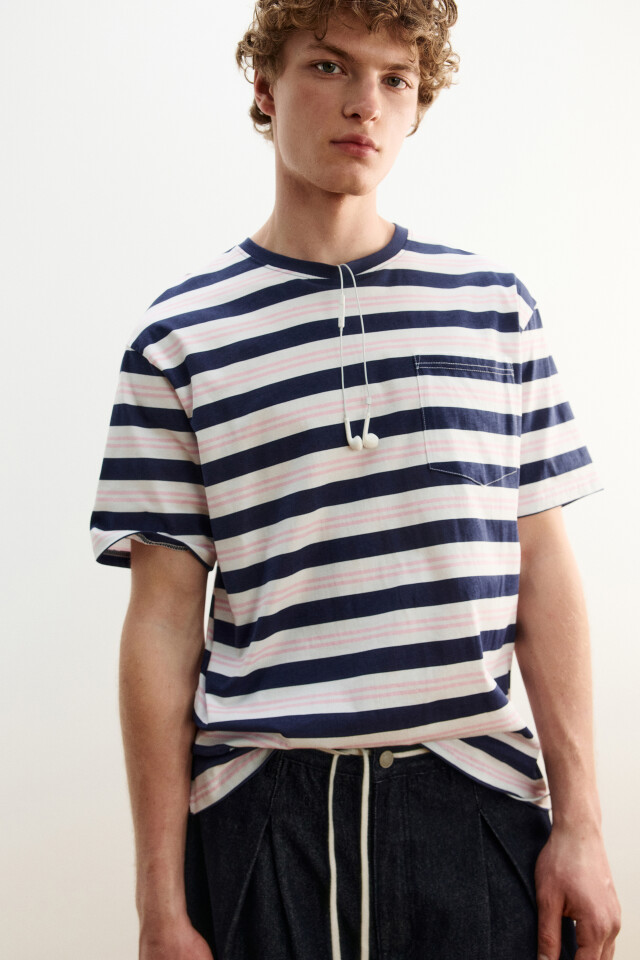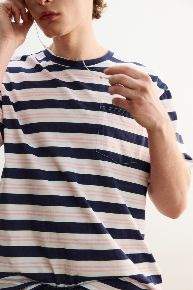 Футболка хлопковая в полоску с нагрудным карманом