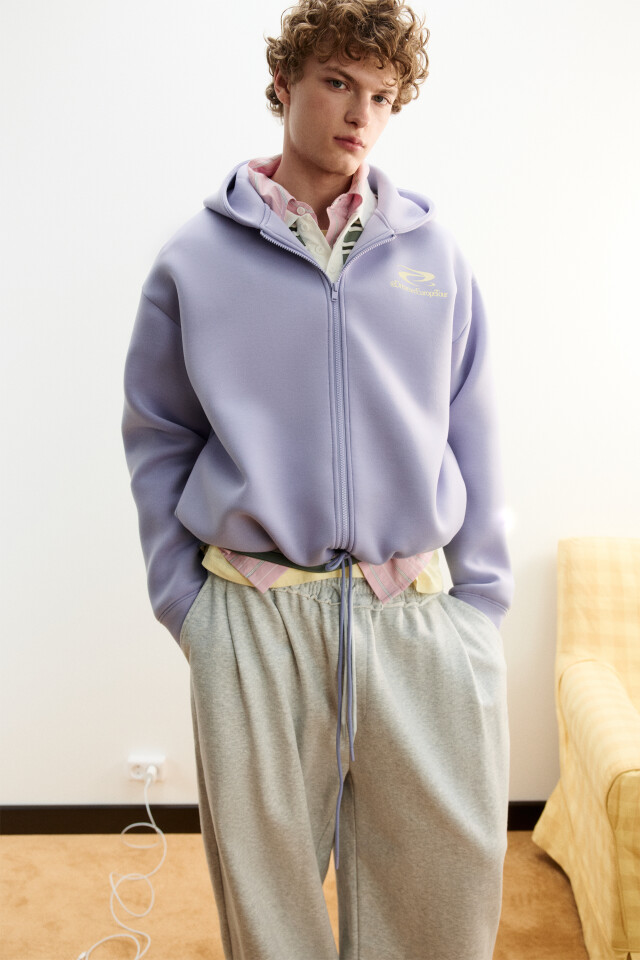 Худи на молнии из футера с принтом