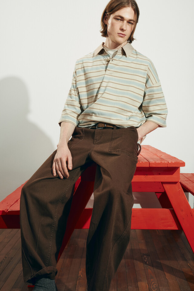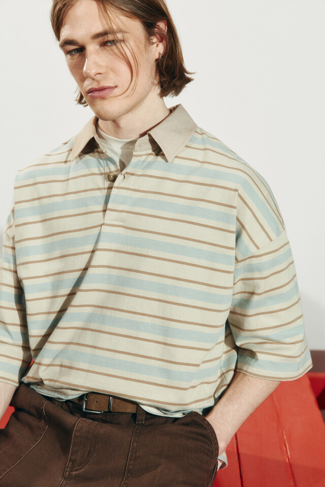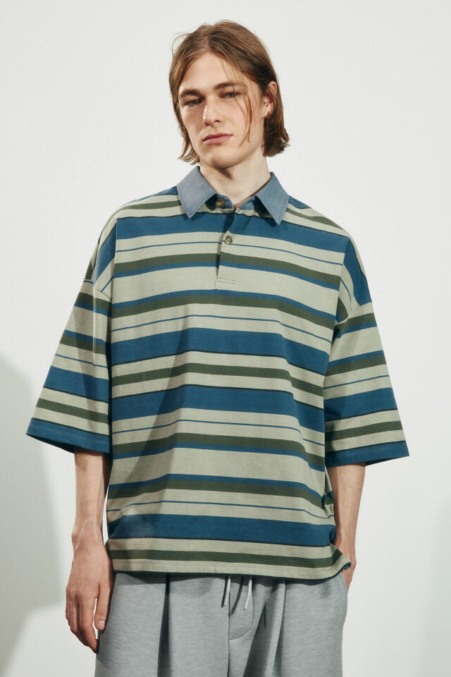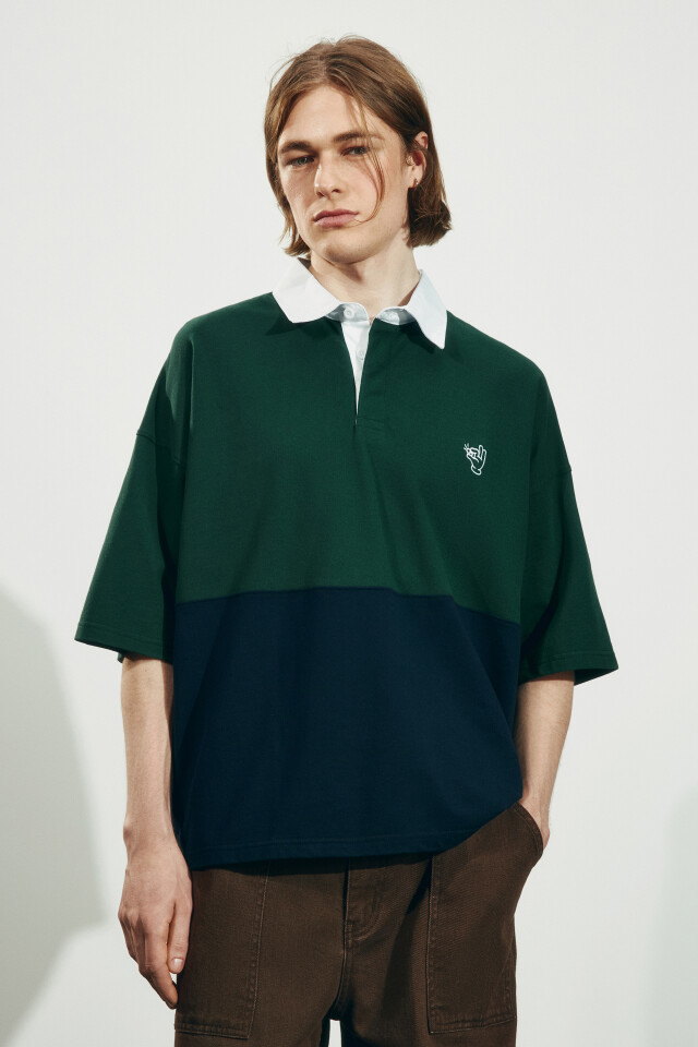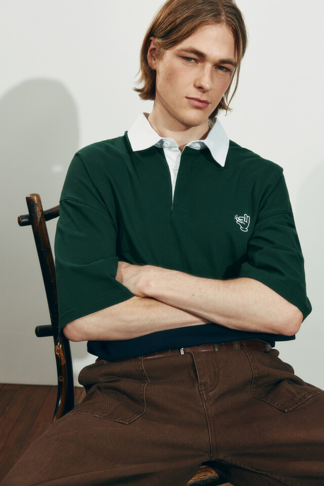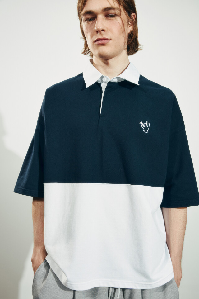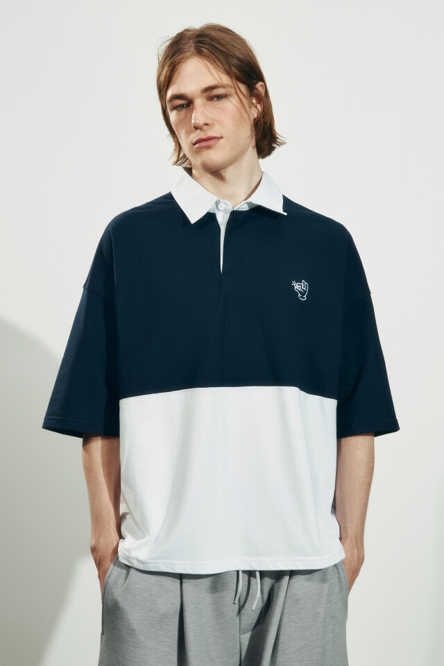 Футболка-поло оверсайз с вышивкой и контрастным воротником