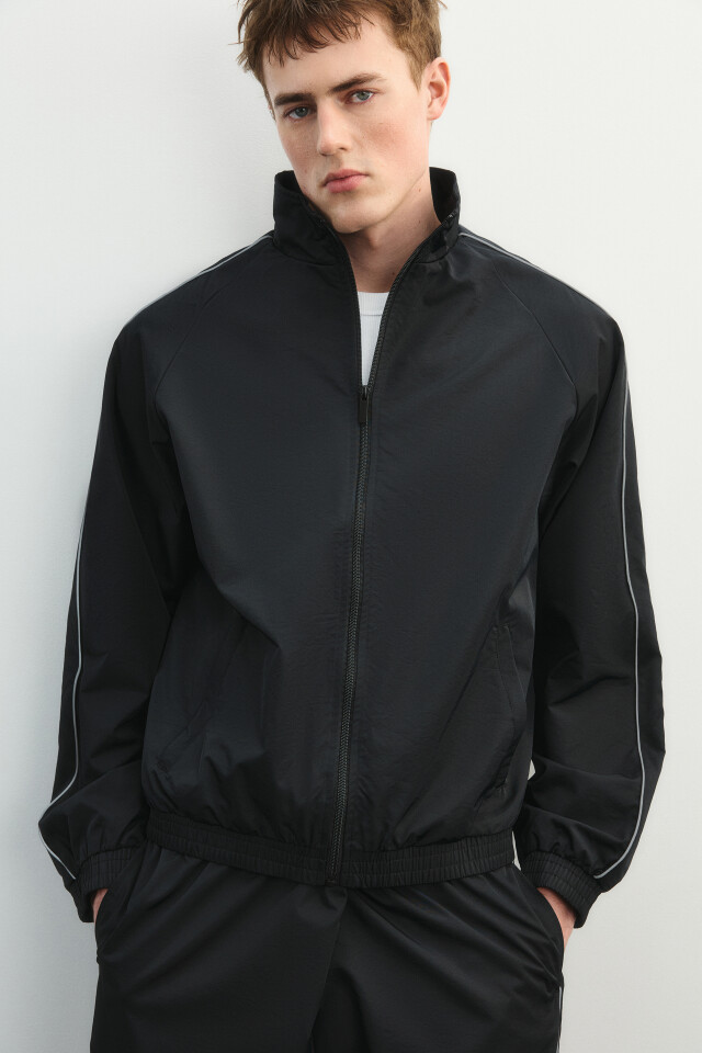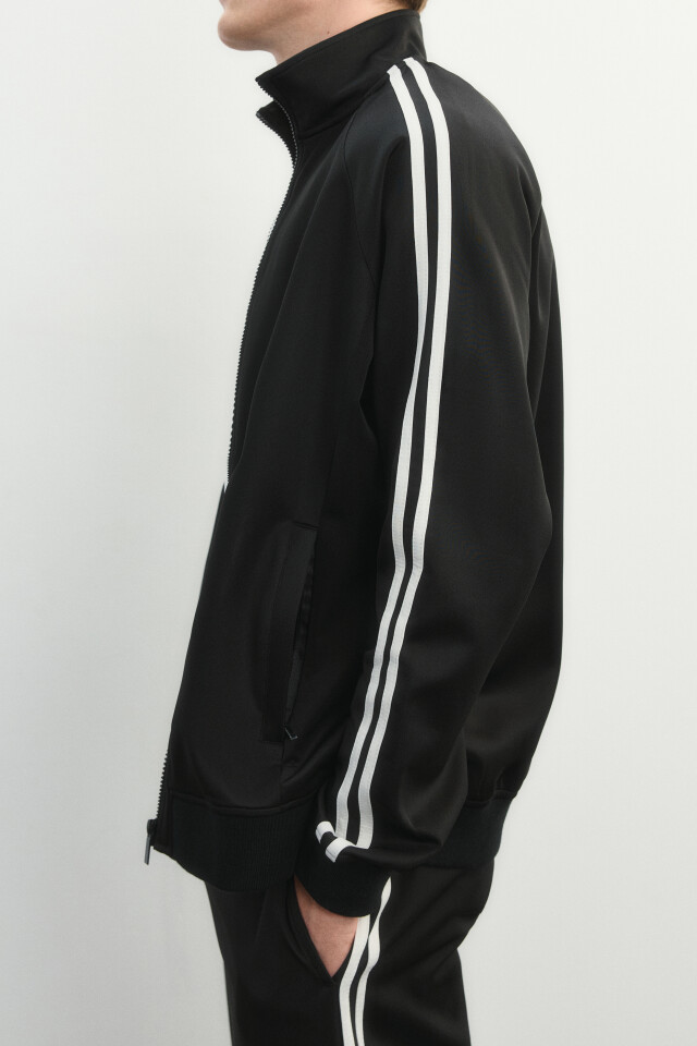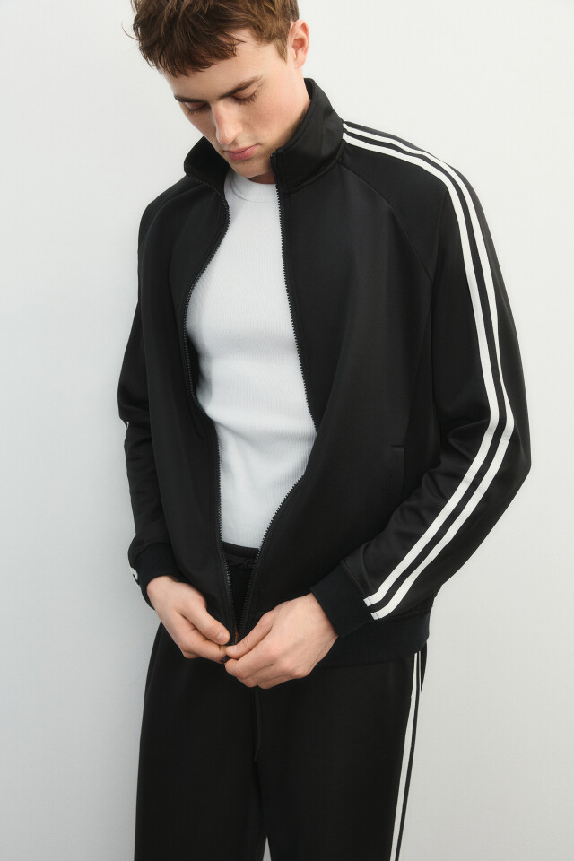 Куртка-ветровка спортивная с воротником-стойкой и лампасами