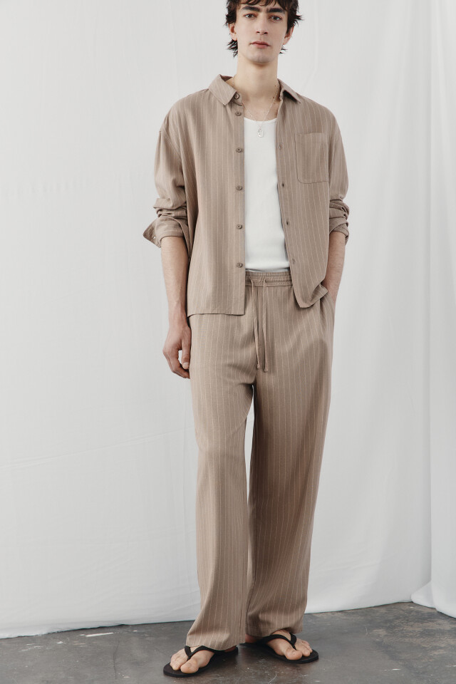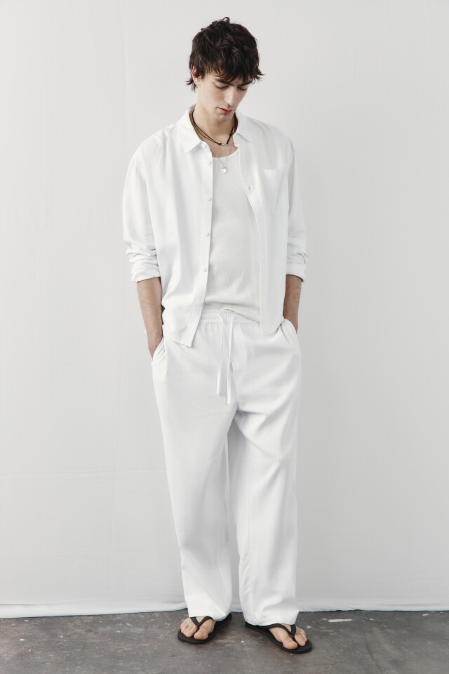 Брюки широкие трикотажные на завязках со льном