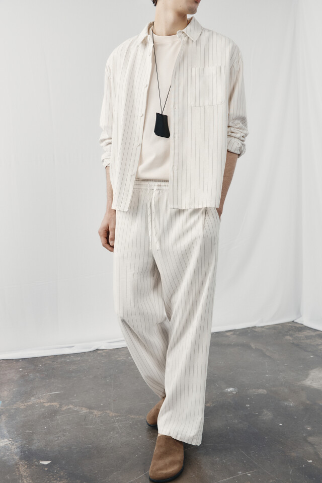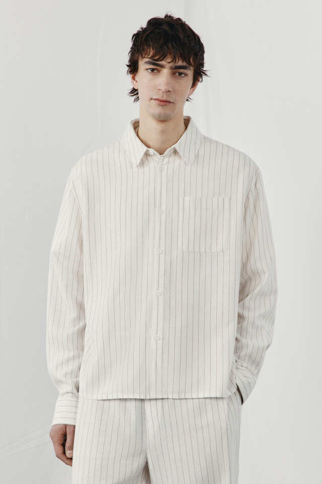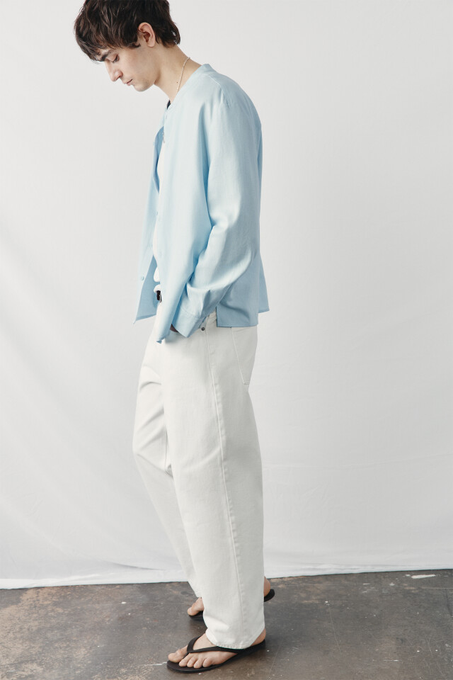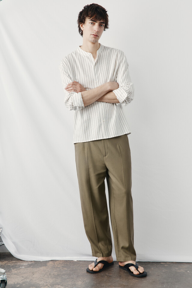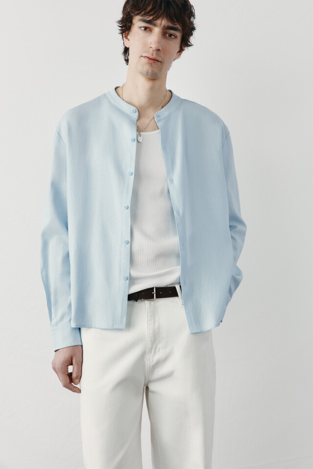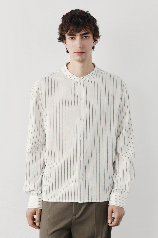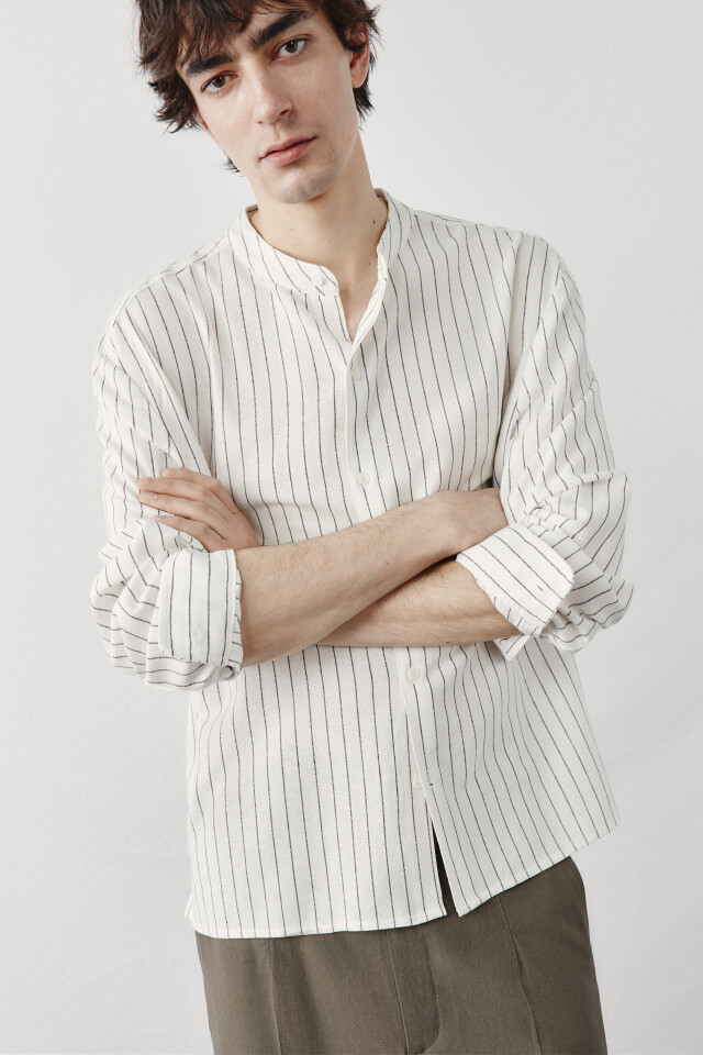 Рубашка без воротника вискозная со льном