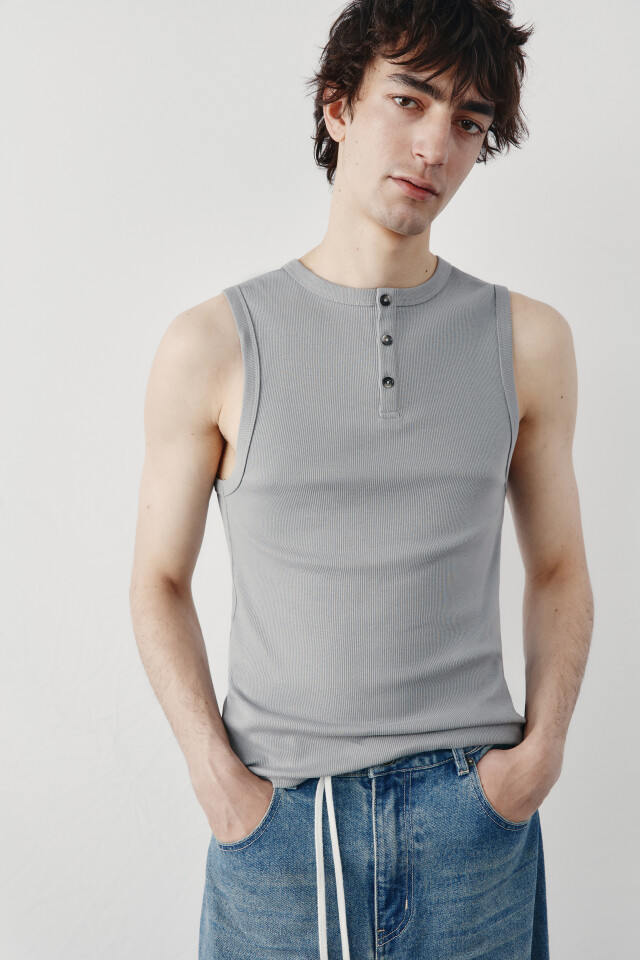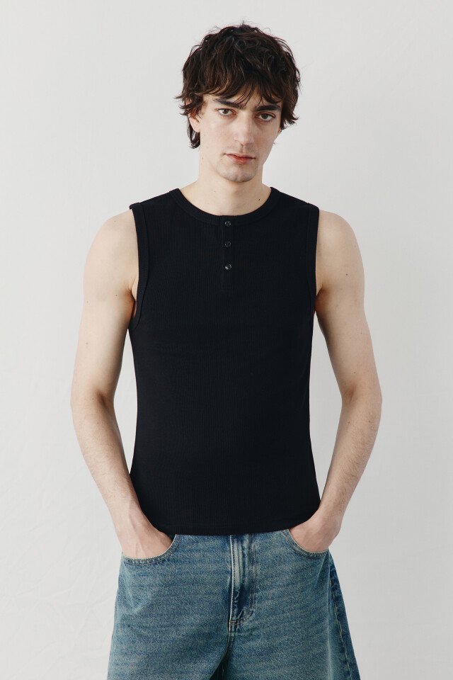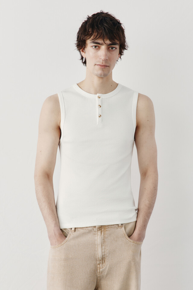 Майка хлопковая приталенная на пуговицах в рубчик