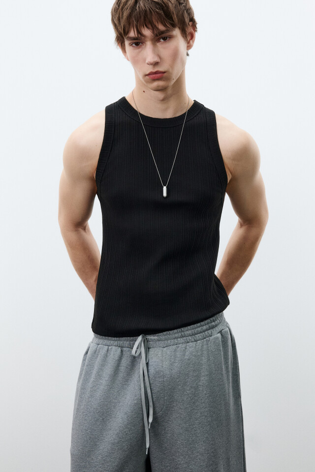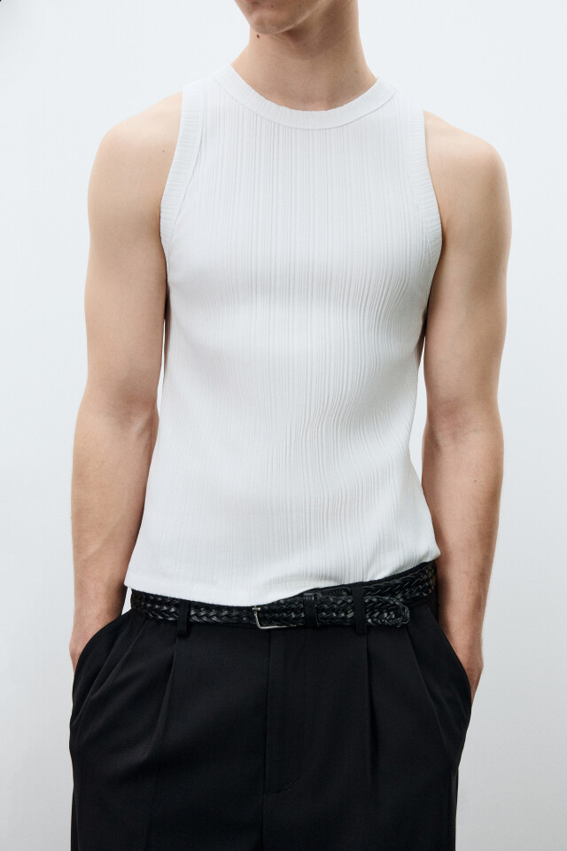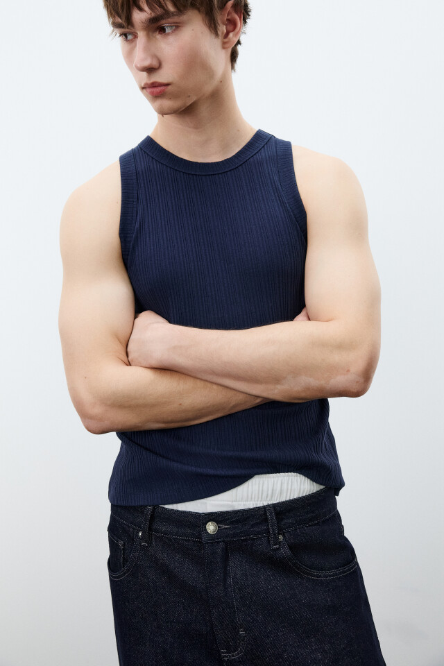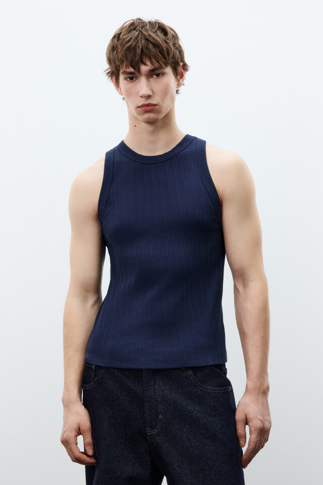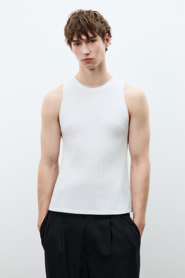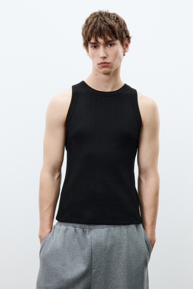 Майка-топ хлопковая приталенная в рубчик