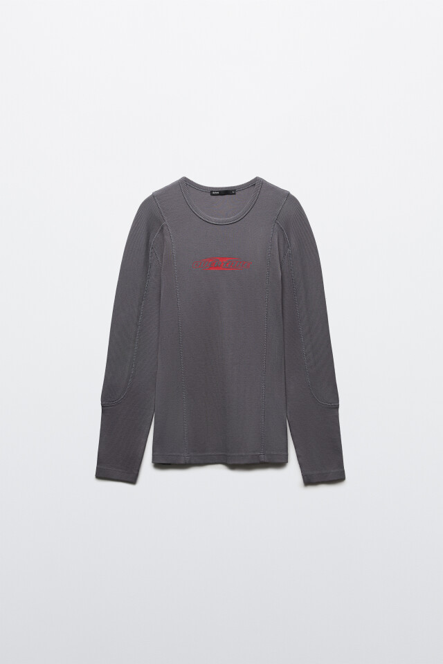 Лонгслив облегающий в рубчик с вареным эффектом