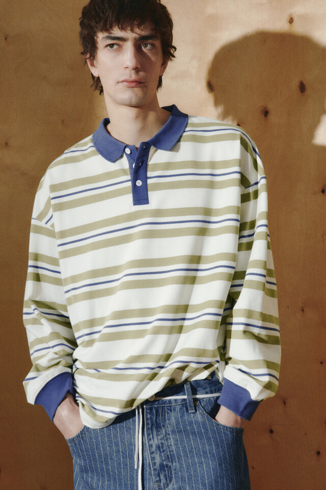 Лонгслив-поло в полоску