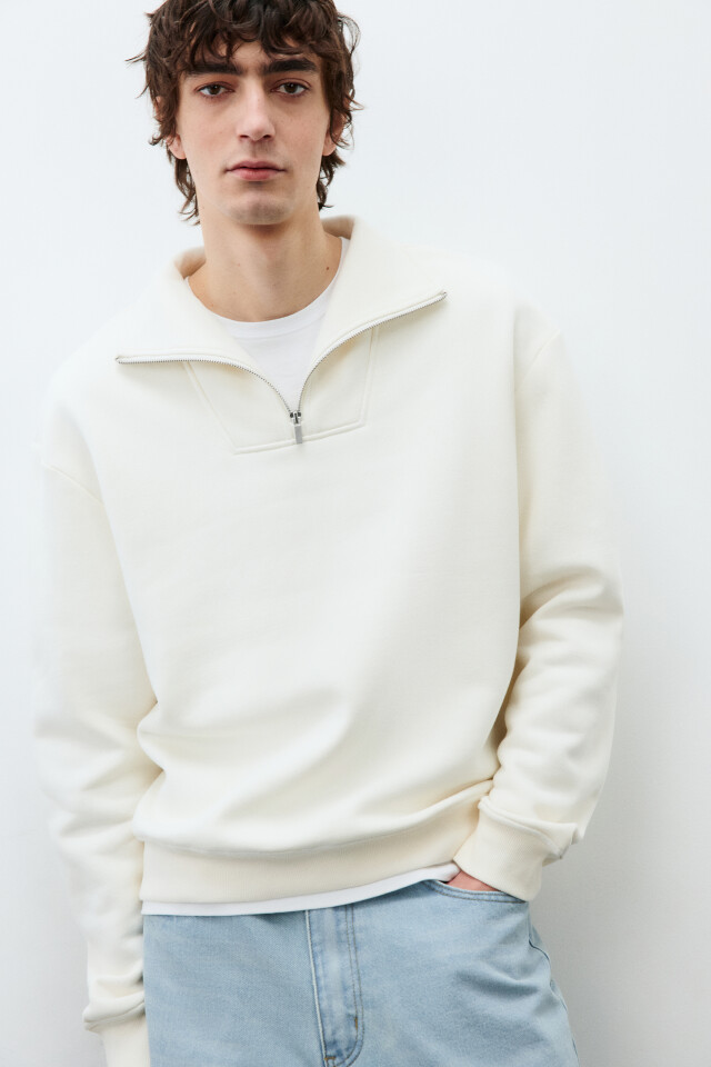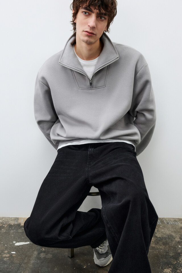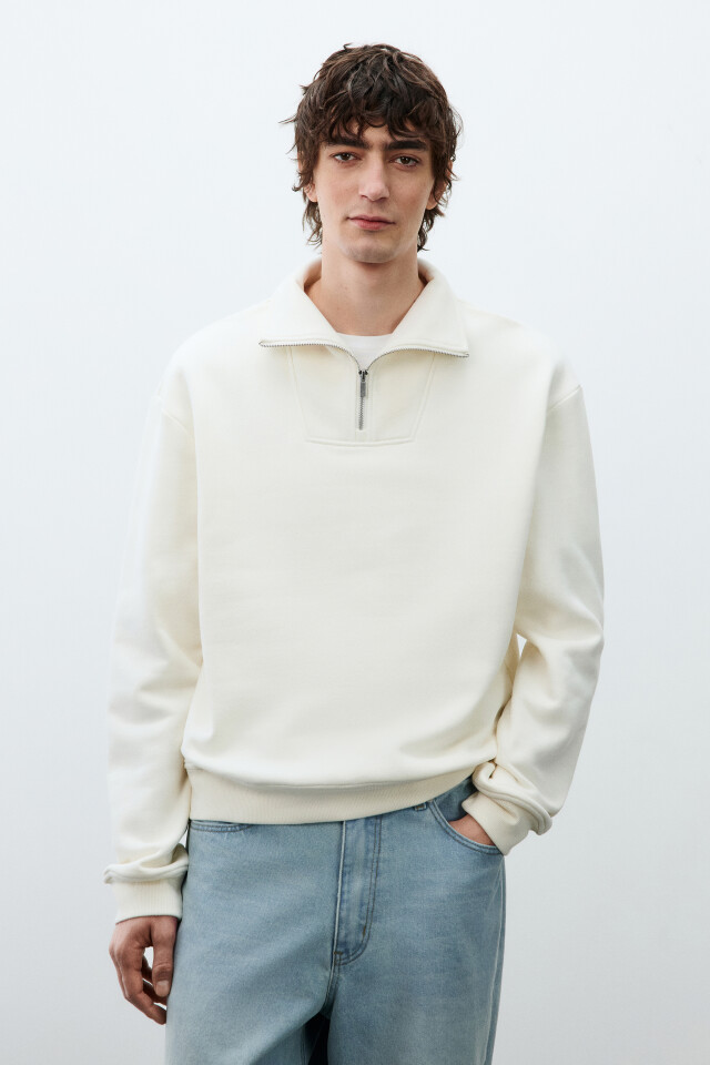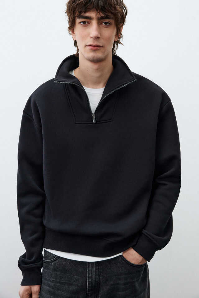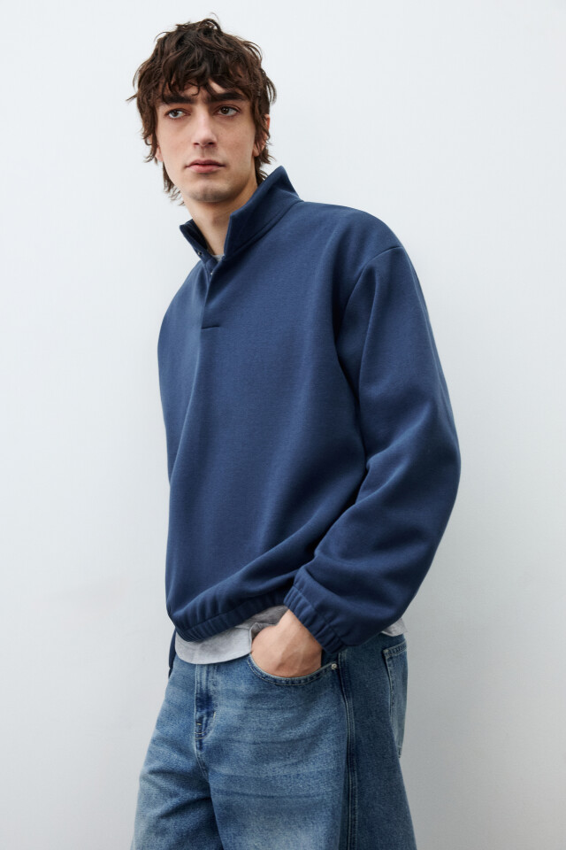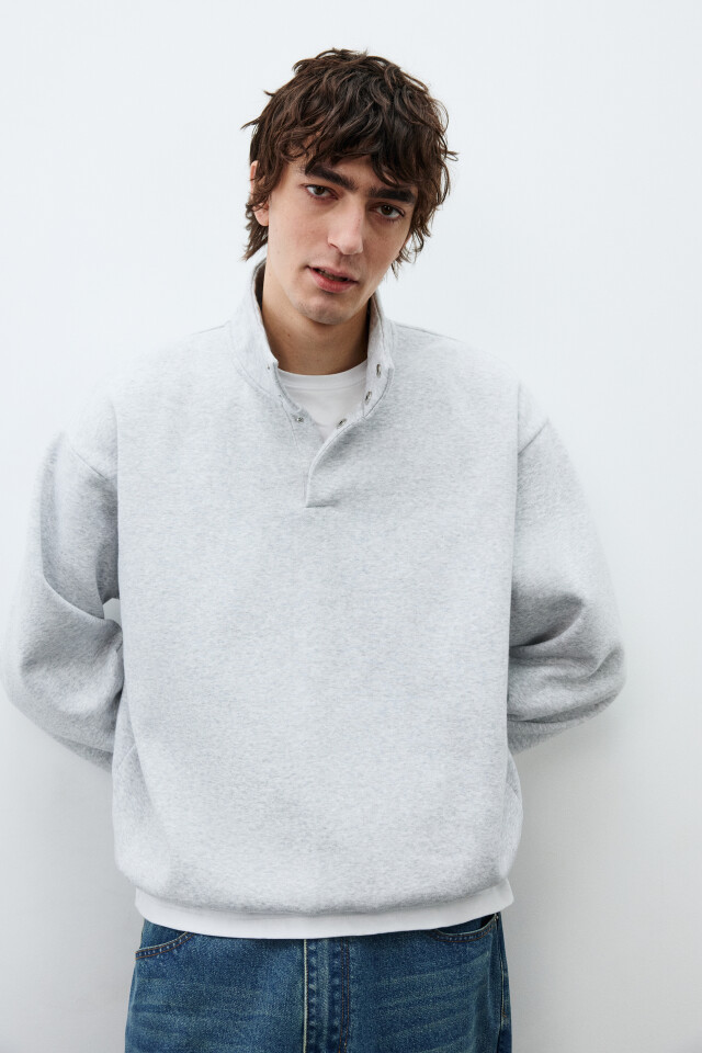 Свитшот из футера с воротником-стойкой на кнопках