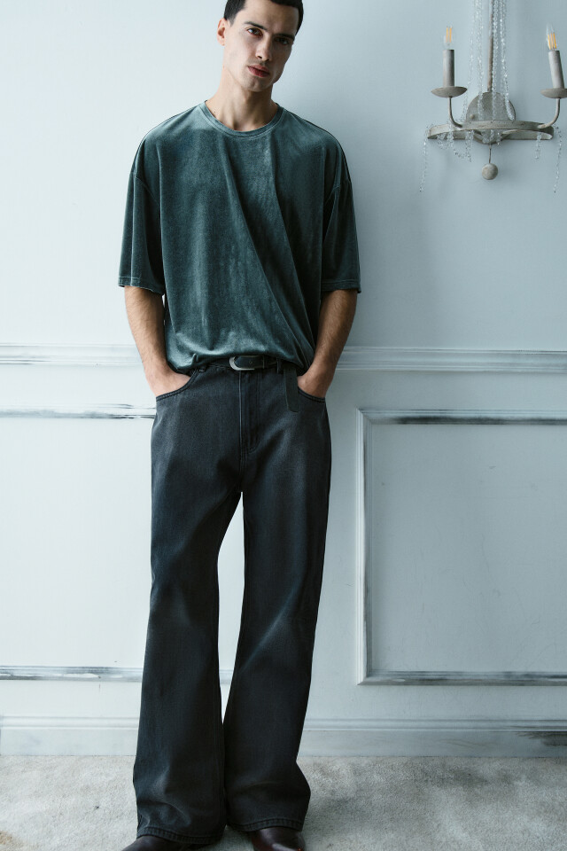 Джинсы широкие с вареным эффектом