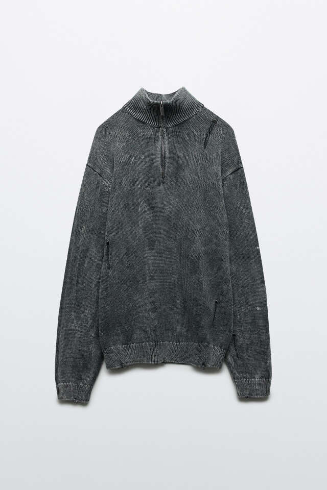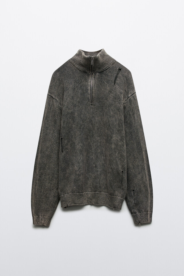Джемпер рваный с вареным эффектом
