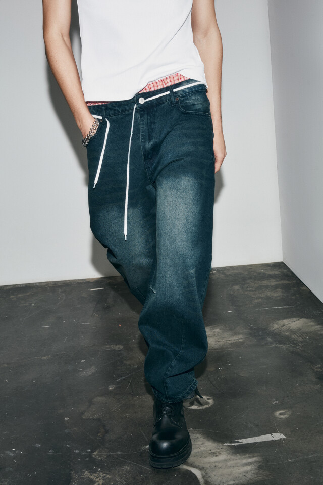 Джинсы широкие с вареным эффектом