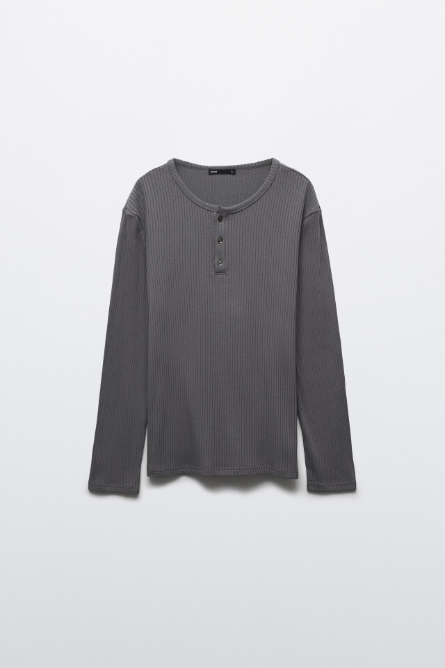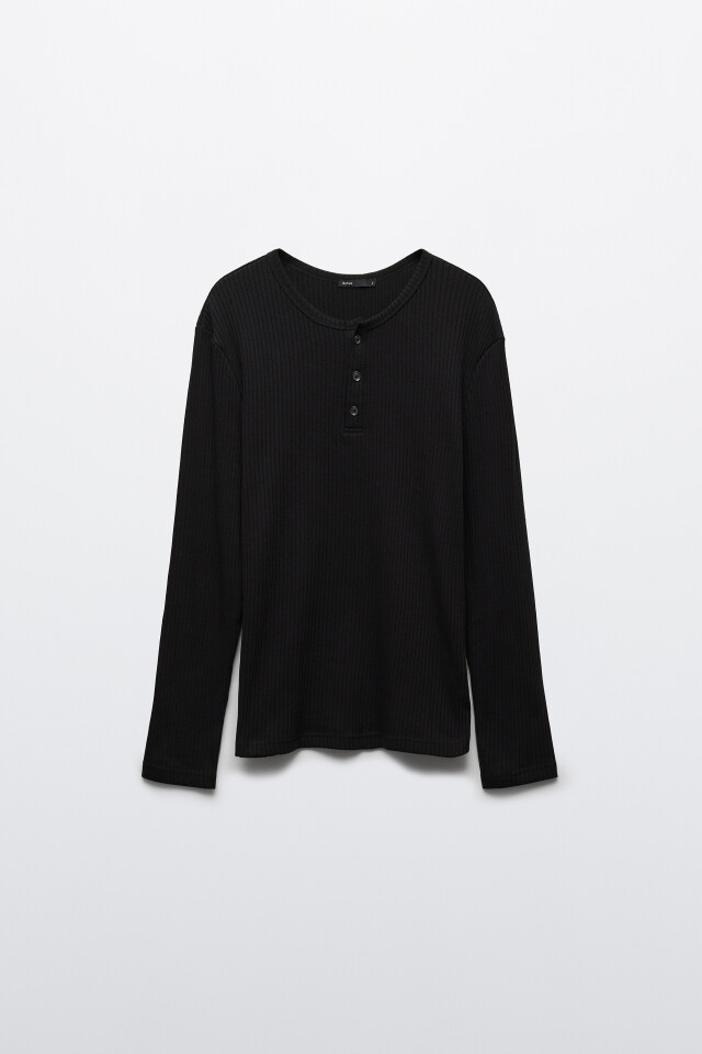 Лонгслив хенли облегающий в рубчик