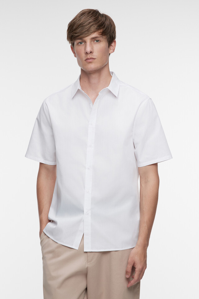 Рубашка slim хлопковая приталенная с коротким рукавом