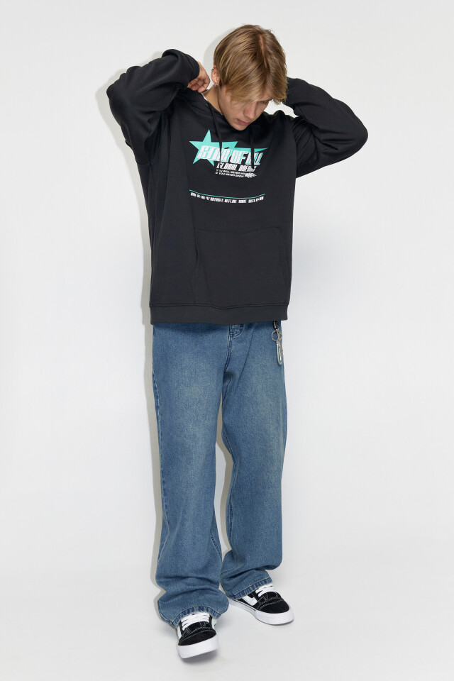 Мужское худи с принтом легко впишется в любой гардероб. Оно отлично сочетается с любыми джинсами: от классических прямых до широких акцентных моделей. Для создания расслабленного и спортивного образа надень его в паре с удобными спортивными штанами.