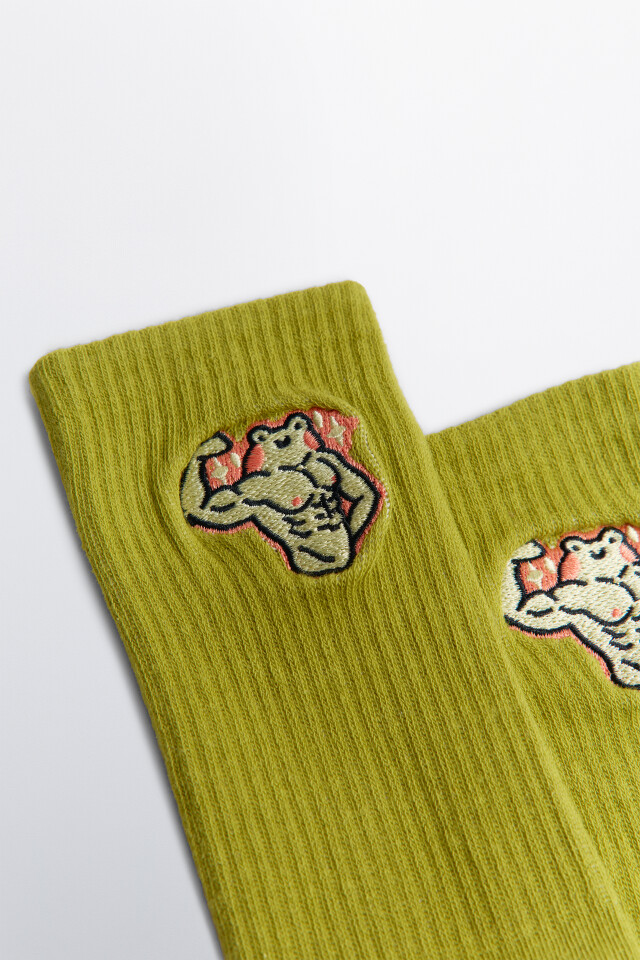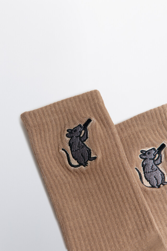 Носки высокие в рубчик с вышивкой