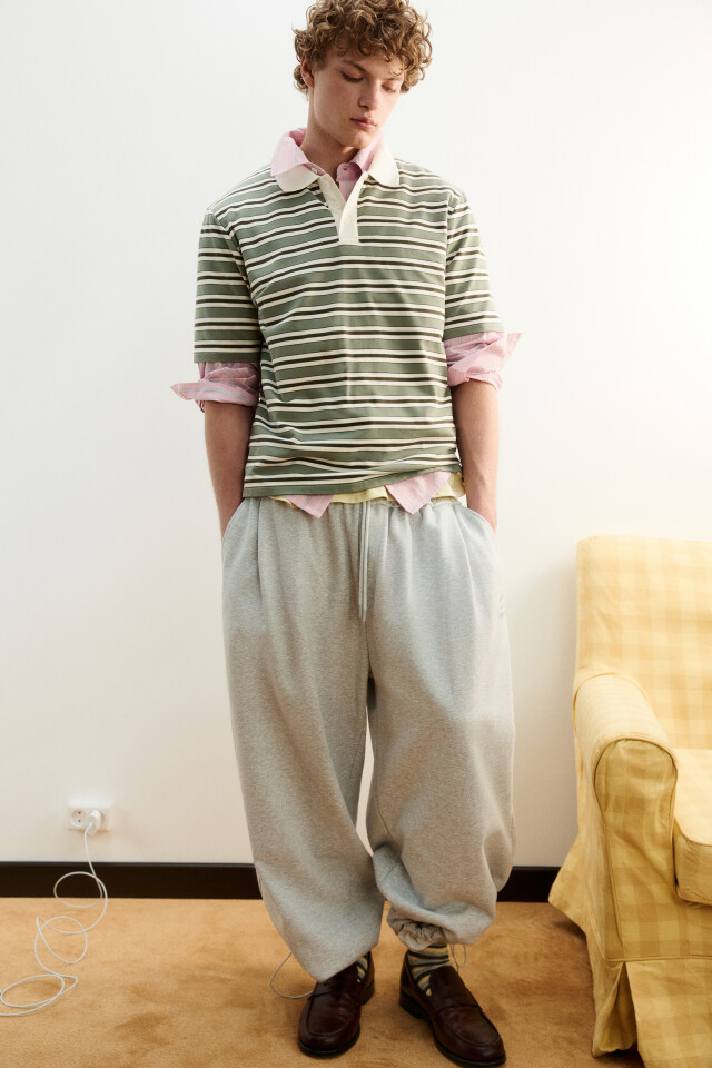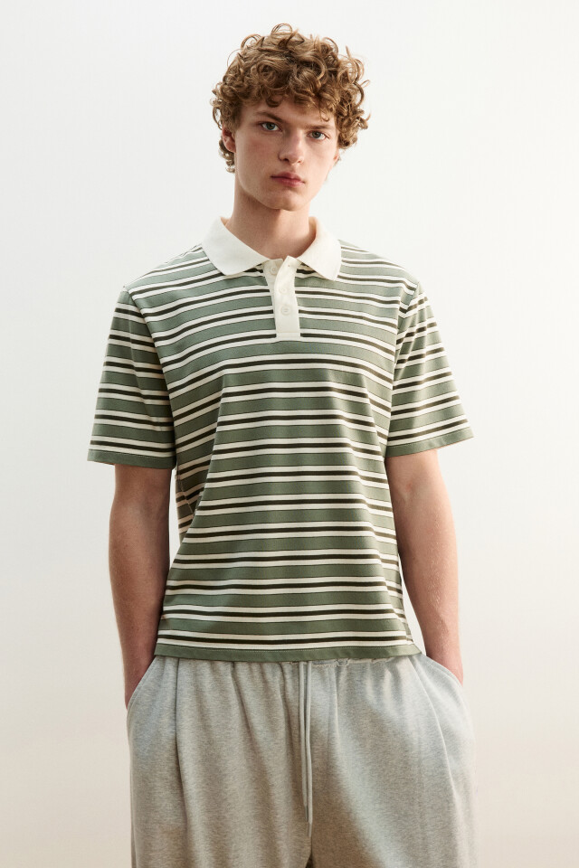 Футболка-поло оверсайз с вышивкой и контрастным воротником