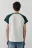 - Круглый вырез горловины без воротника. Короткие свободные рукава-реглан контрастного цвета с прямыми манжетами. Прямой нижний край без разрезов и декоративных элементов