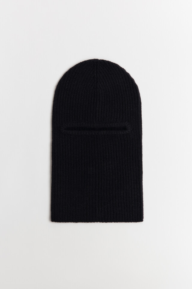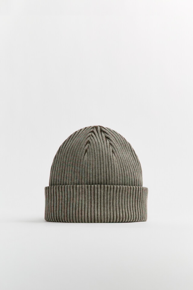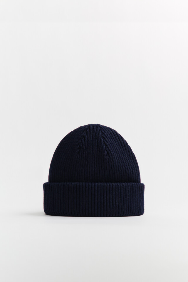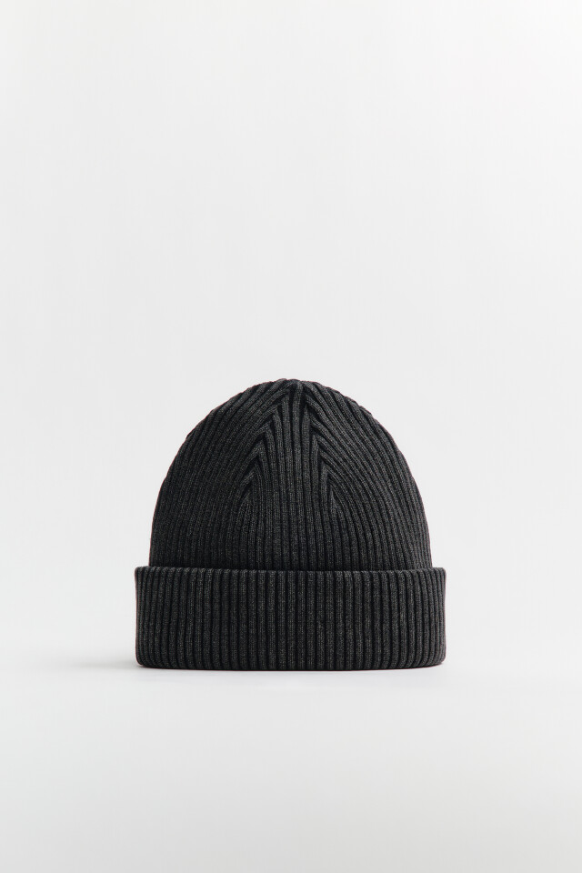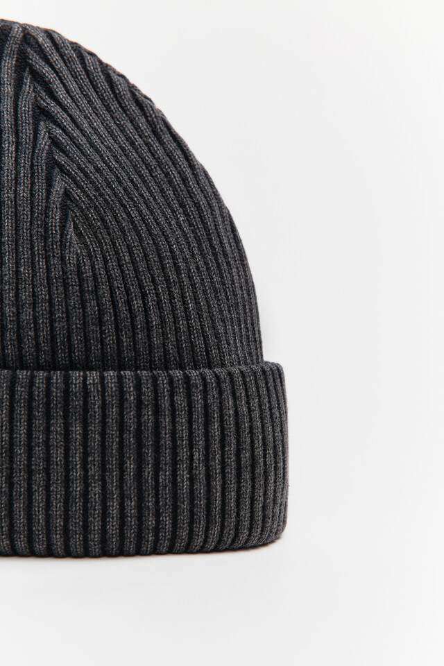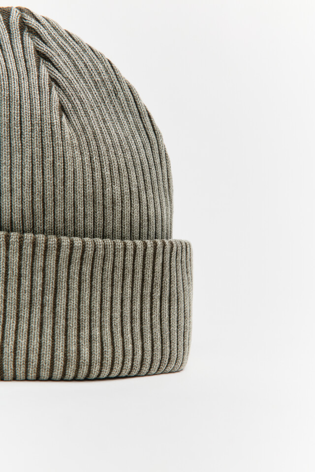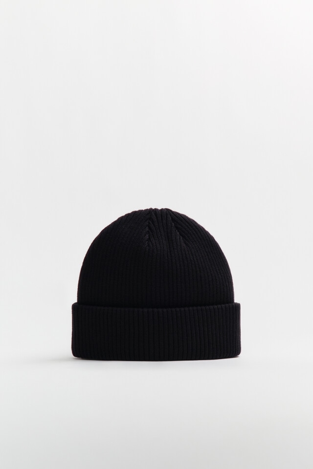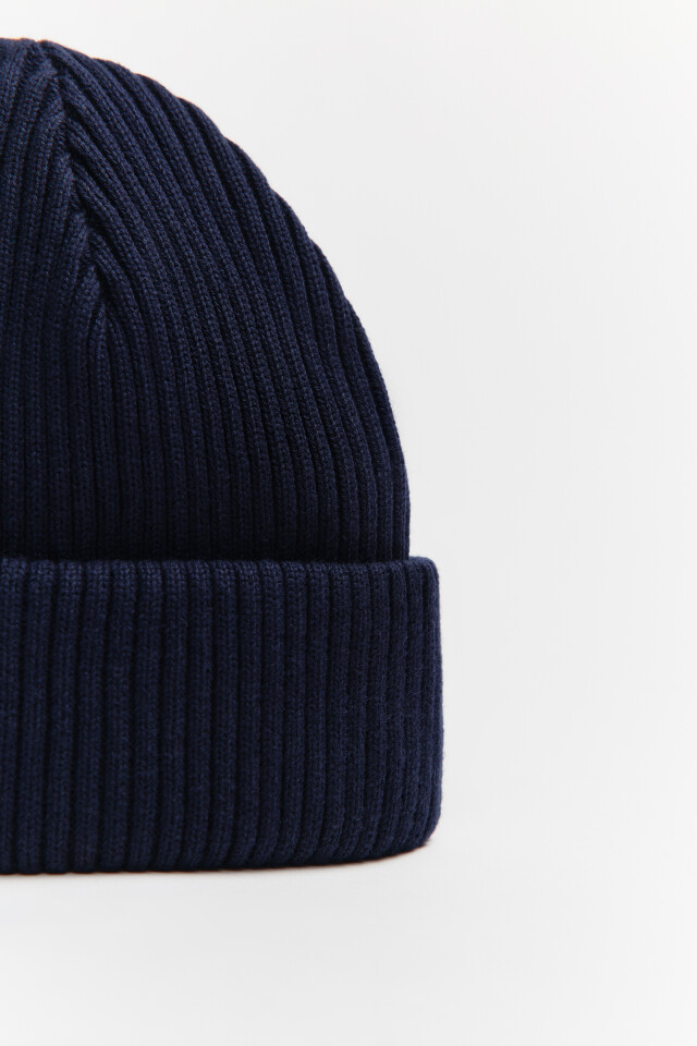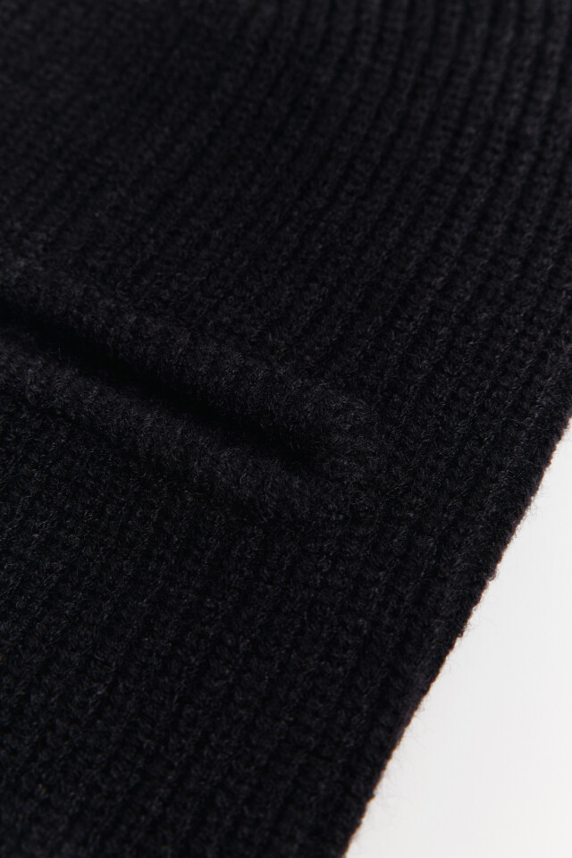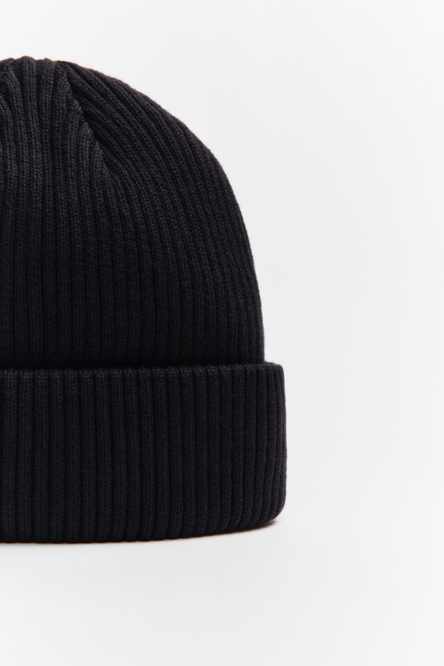 Шапка-бини вязаная с отворотом и принтом-надписью