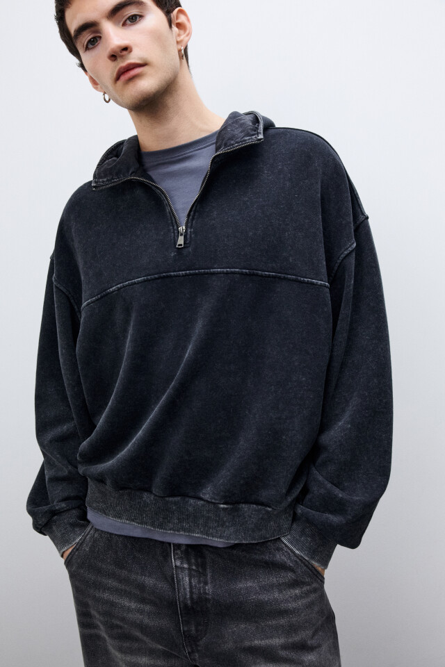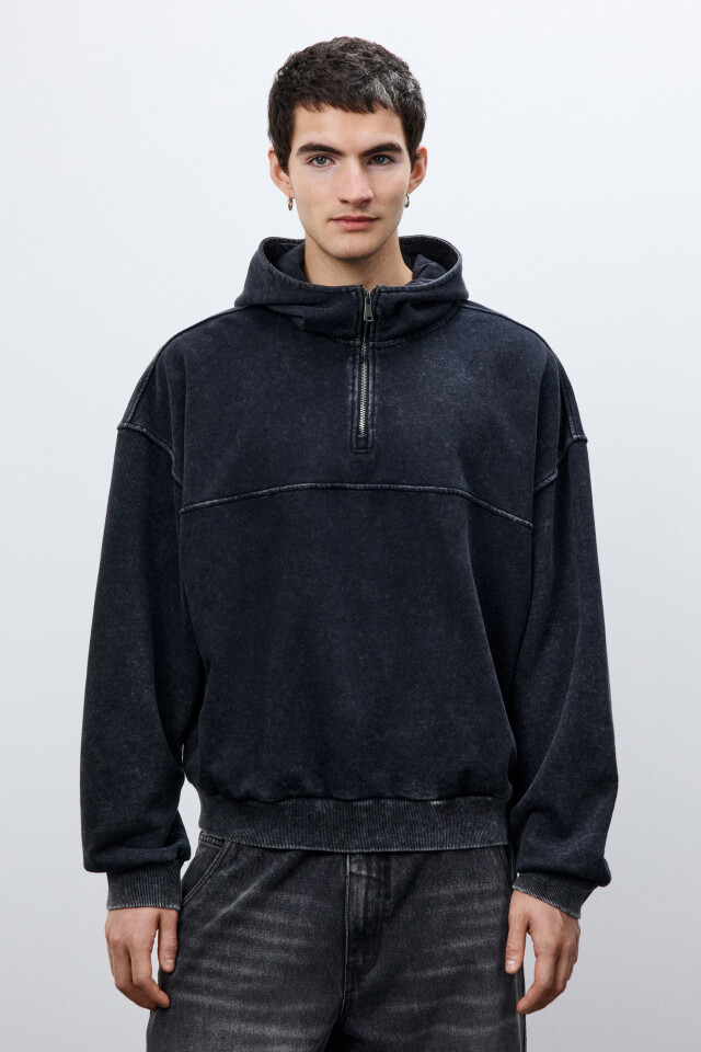 Огромной плюс толстовок — максимальная сочетаемость. Одна вещь может стать основой разных образов: как более классических, так и спортивных. Для первого варианта сочетай half-zip толстовку с прямыми синими джинсами и базовыми кедами, а для второго — выбирай джоггеры, надевай любимые кроссовки и дополняй аутфит поясной сумкой через плечо. В качестве нижнего слоя используй футболку или рубашку — так образ будет выглядеть более свежо и современно.