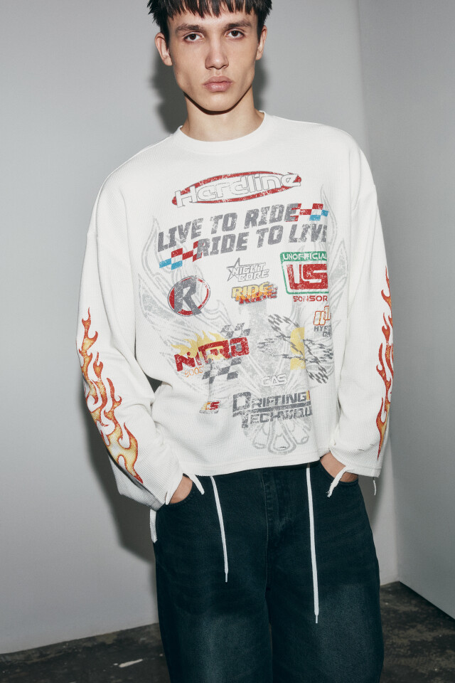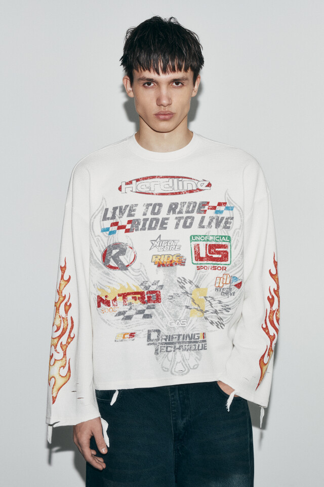 Лонгслив свободный с рваными краями и логотипами