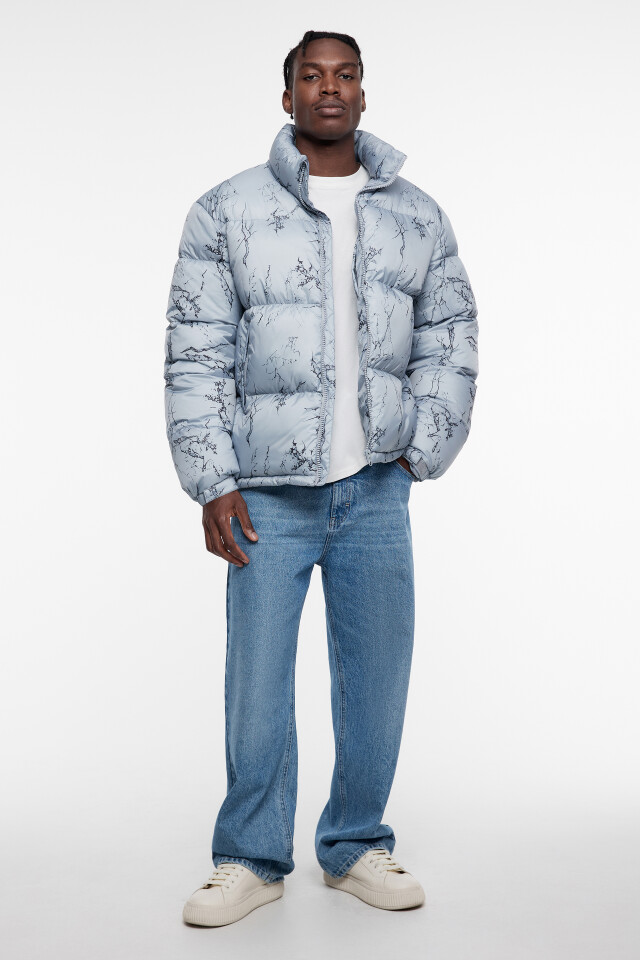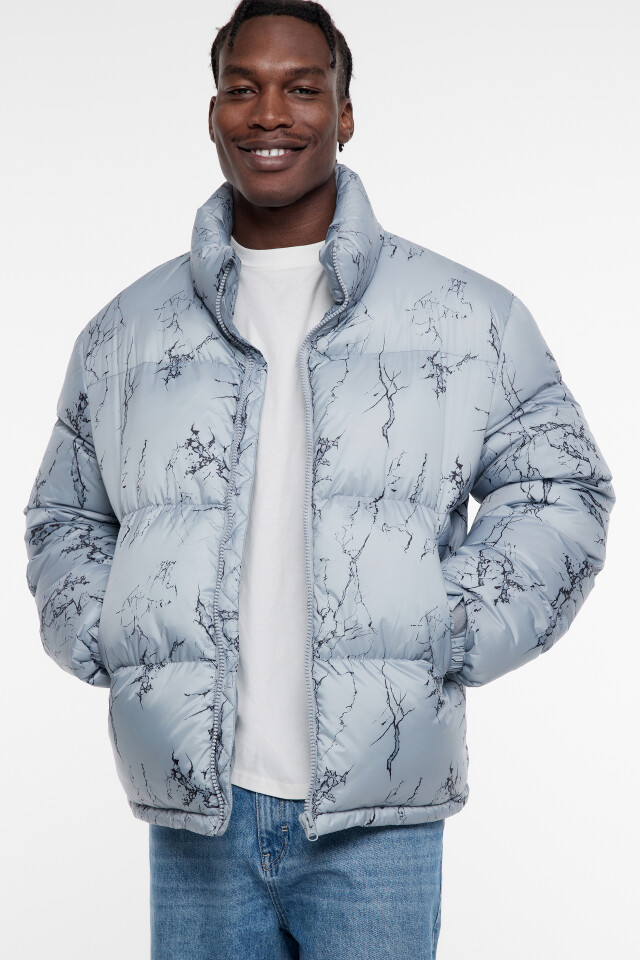 Куртка-пуховик стеганая с воротником-стойкой и принтом