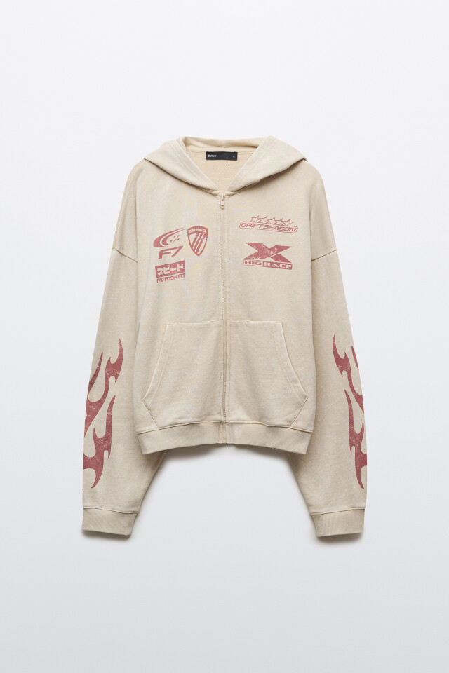 Худи-зипка оверсайз флисовая с принтом
