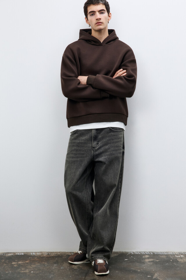 Выбирай лаконичные однотонные варианты для создания базового гардероба или яркие модели с принтами, чтобы подчеркнуть свою индивидуальность. Мужское худи отлично сочетается с джинсами любого кроя, брюками чинос и спортивными штанами. Освежить образ поможет белая футболка: надень ее в качестве первого слоя, чтобы воротник был едва заметен.