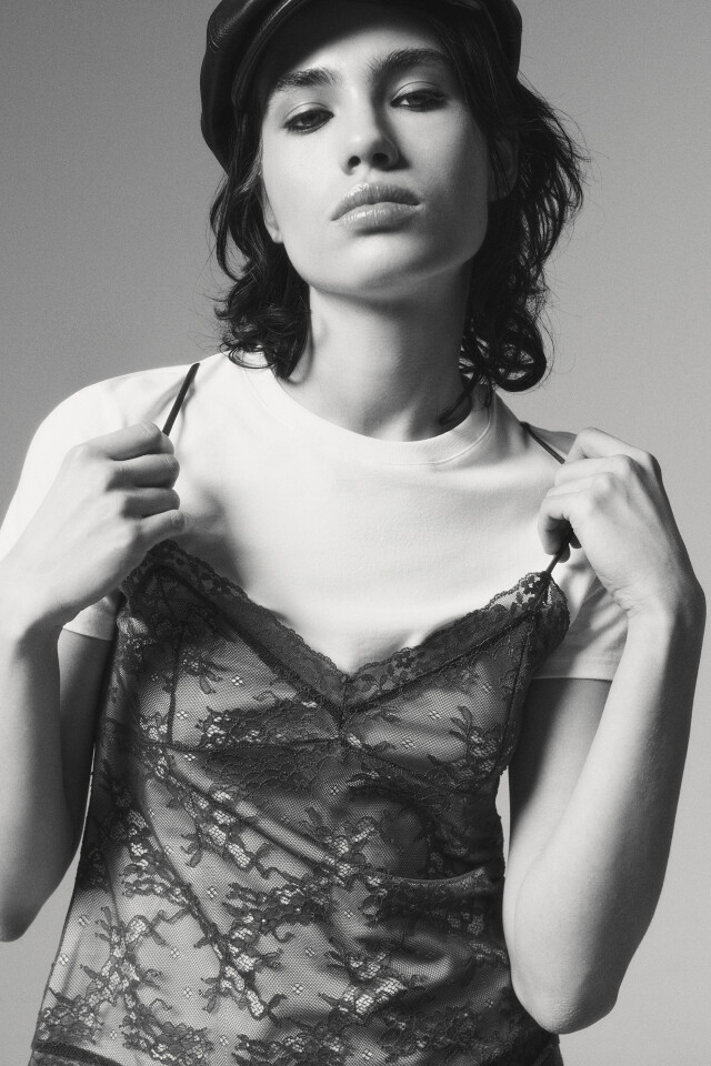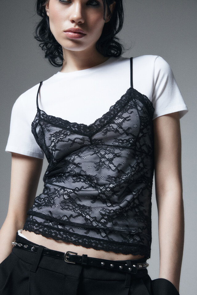Блузка-топ кружевная с имитацией футболки