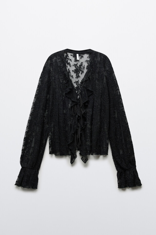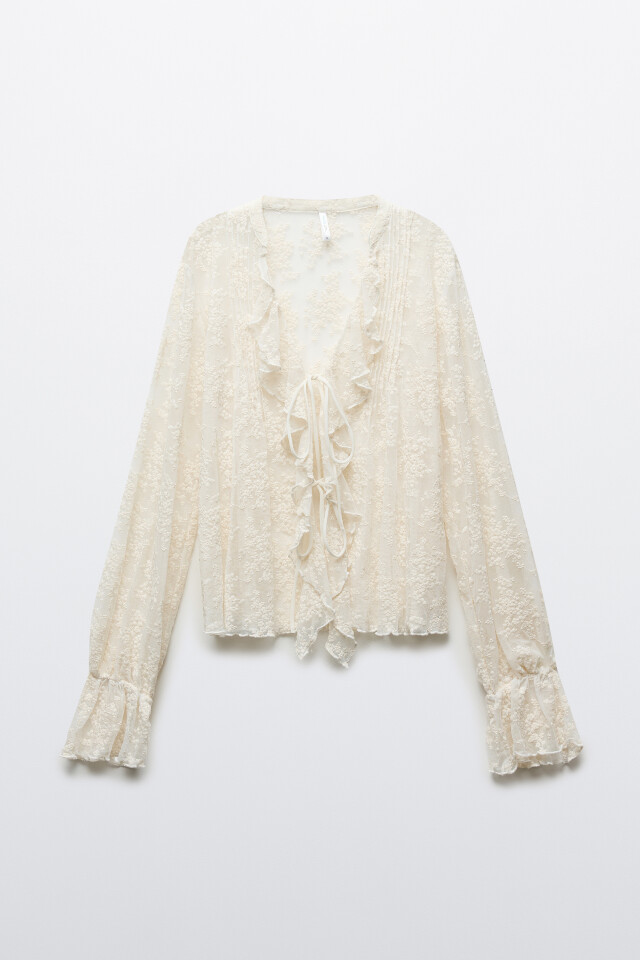 • Блузы с открытыми плечами, воланами, драпировкой или бантом – добавят романтичности, подчеркнут женственность;
