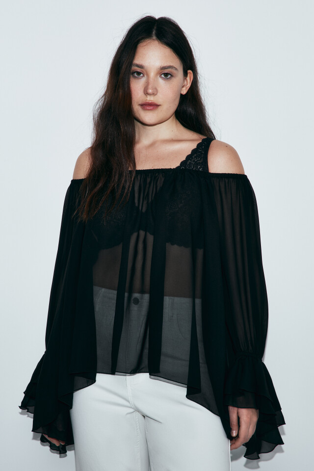 Блузка-топ шифоновая с пышными рукавами