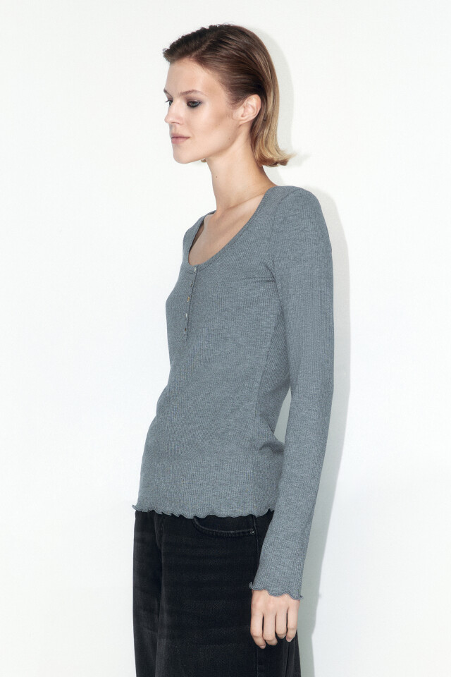 Лонгслив в рубчик с застежкой на груди