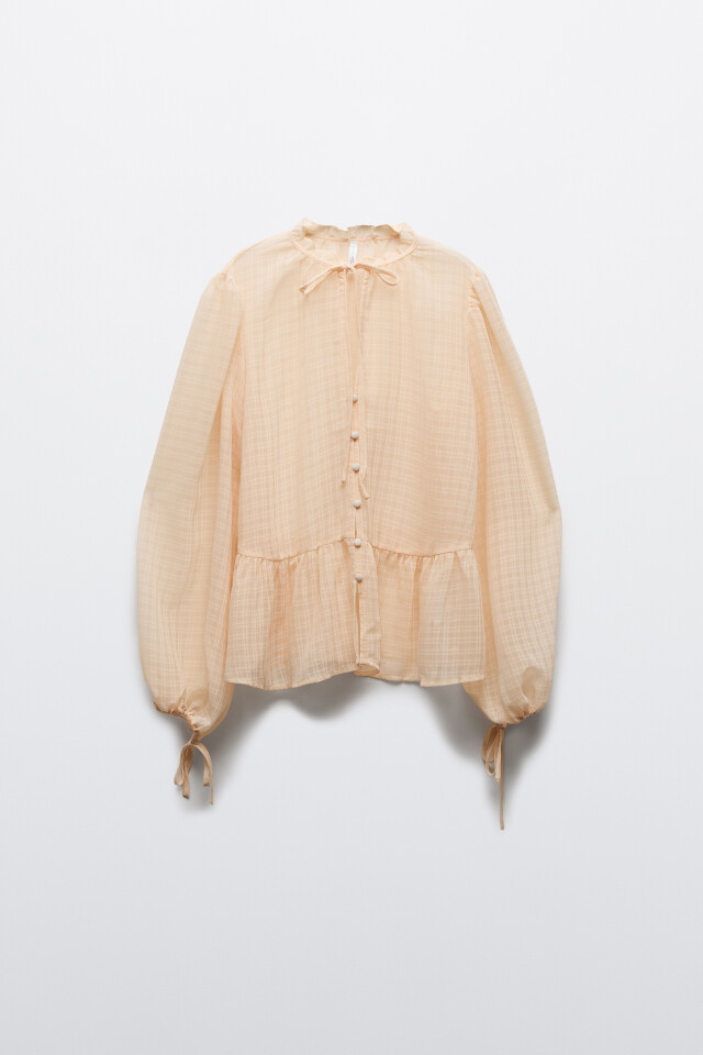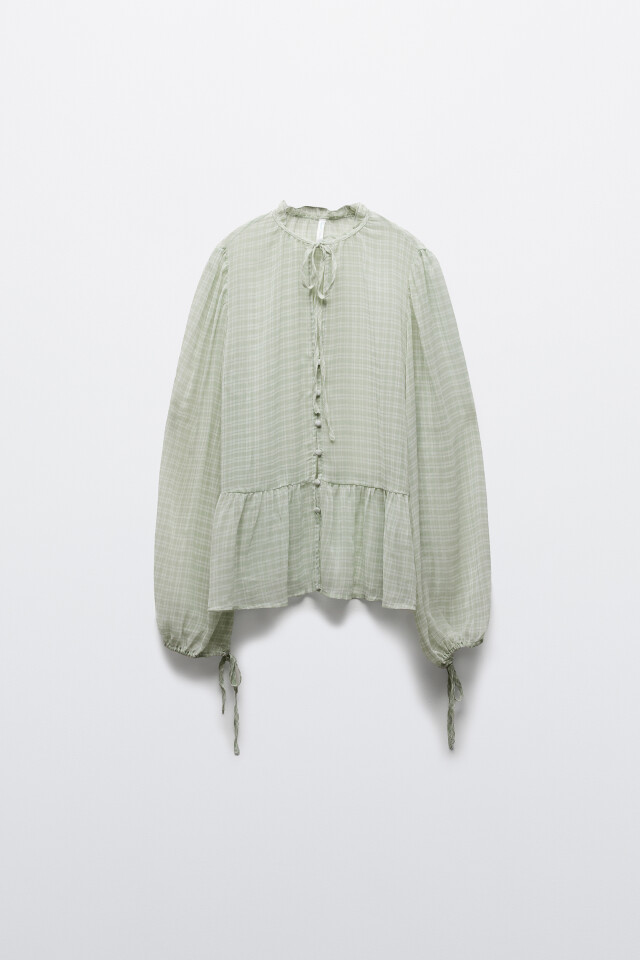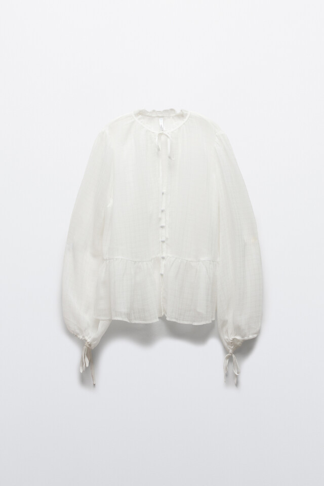 Блузка хлопковая с пышным рукавами на завязках