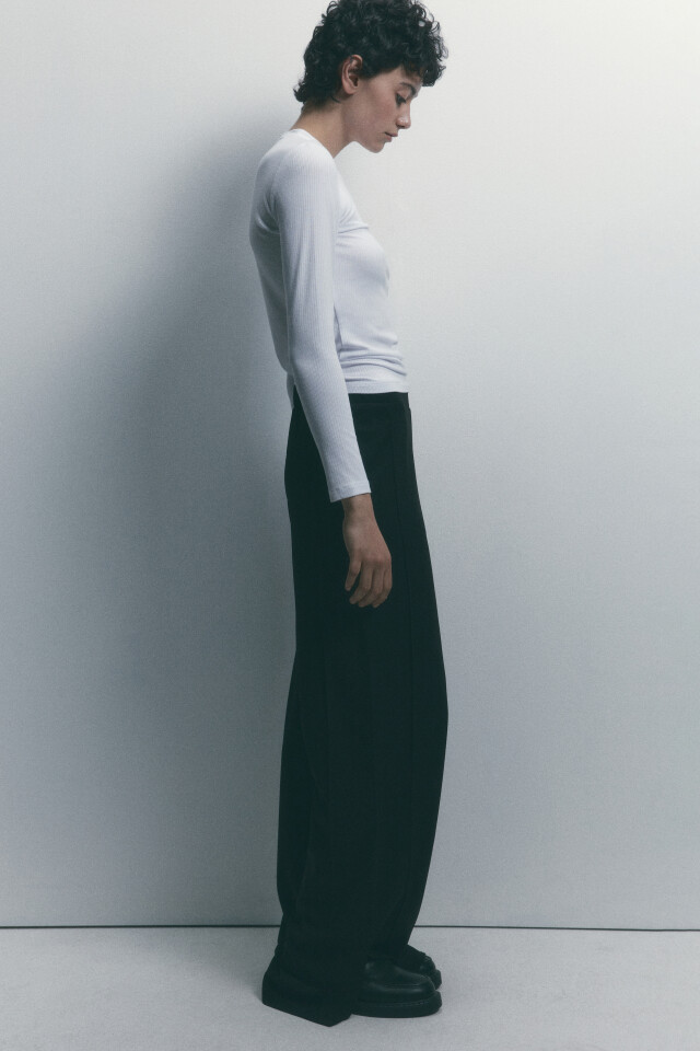 Брюки широкие с высокой посадкой и поясом-резинкой