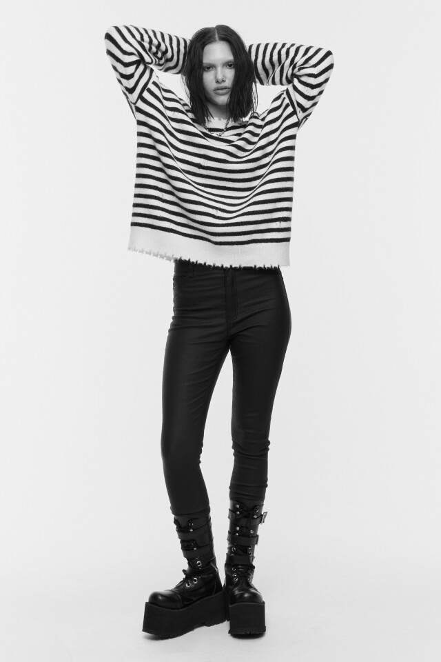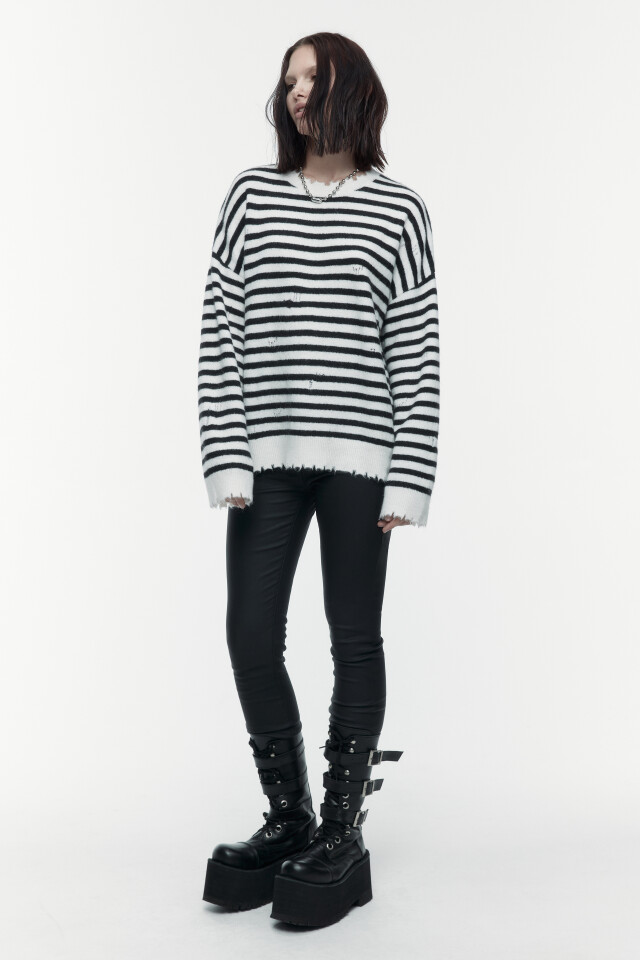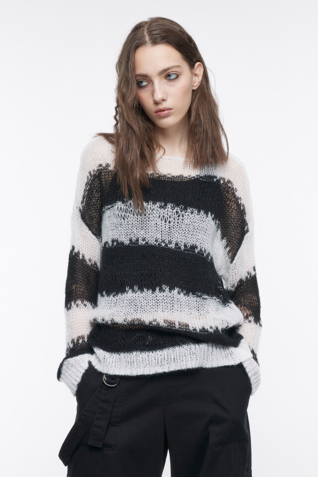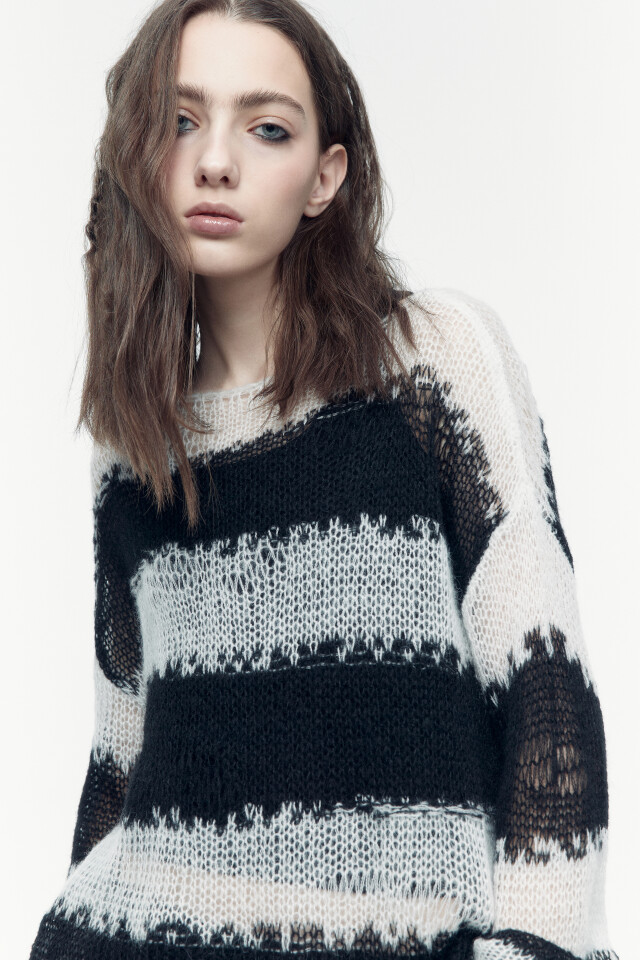 Джемпер вязаный рваный в полоску