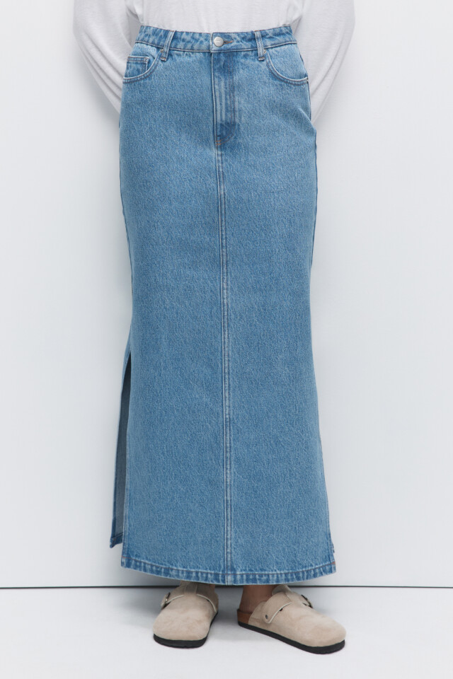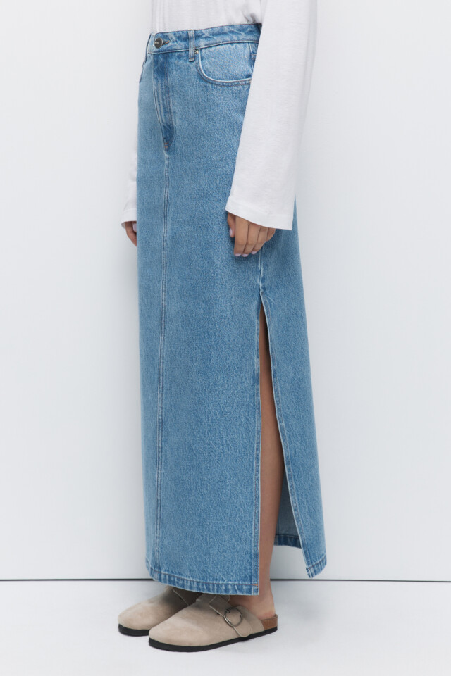 Длину юбки выбирай по настроению: мини позволит создать кокетливый образ, а если добавить к ней кожанку и грубые ботинки, получится дерзкий аутфит, который точно запомнится окружающим. Юбка миди идеально подходит для стиля кэжуал: она отличается удобством и универсальностью. Джинсовая макси — идеальный спутник и для повседневных, и для расслабленных образов, например, в стиле бохо. В сочетании с пиджаком и лаконичным топом такая юбка станет прекрасным вариантом для неспешного завтрака с подругами или романтического свидания. А если добавить к ней уютную замшевую рубашку и казаки, получится комфортный и стильный аутфит для прогулки по городу.
