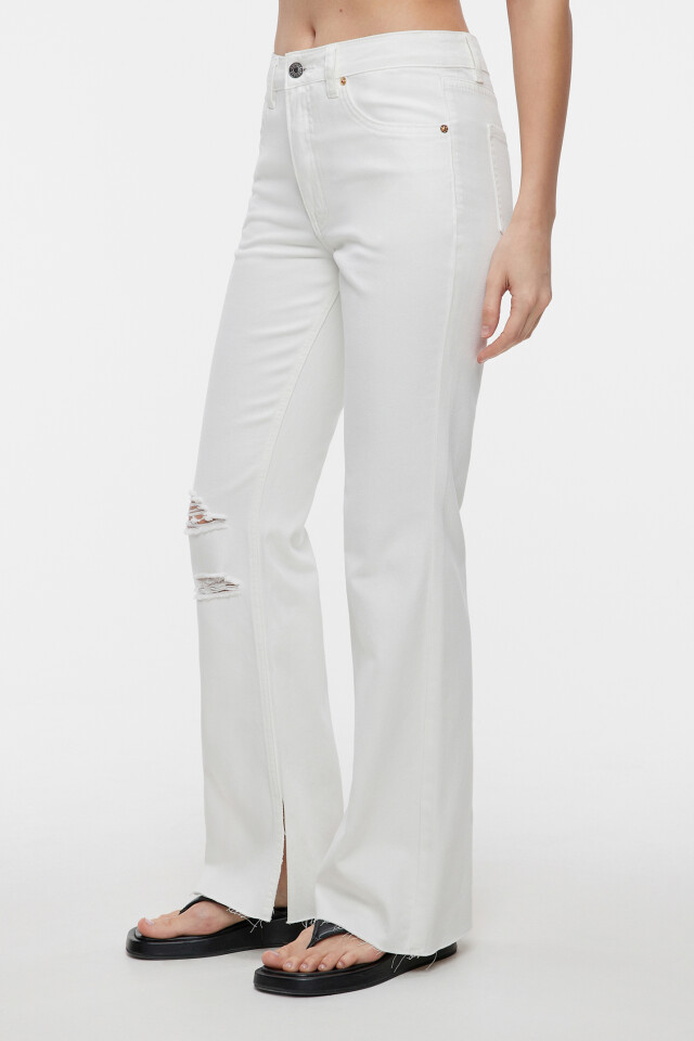 Джинсы клеш с высокой посадкой и открытыми срезами