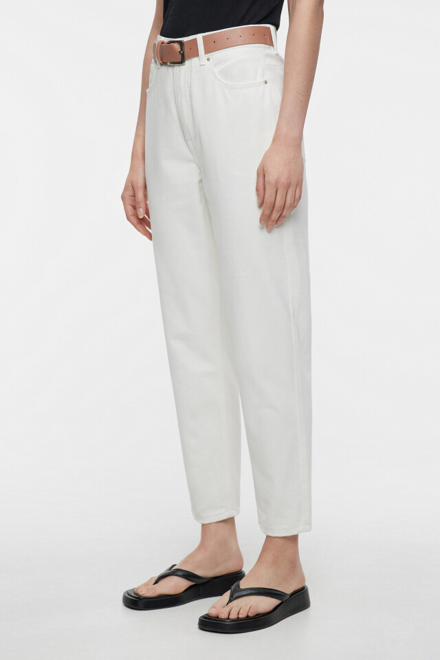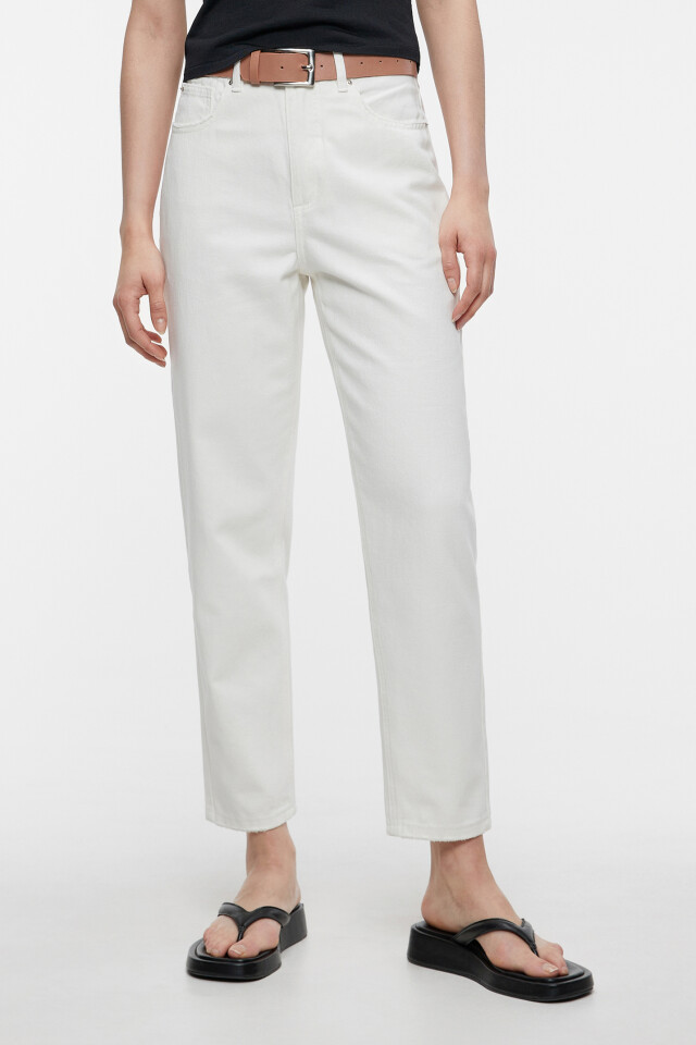 Джинсы mom's классические белые с кожаным ремнем