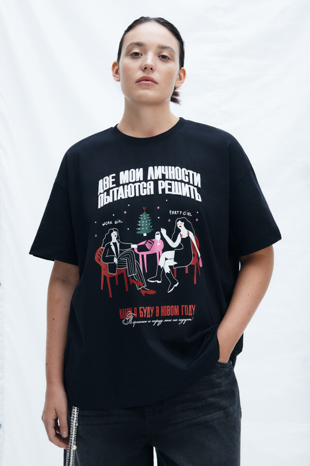 Футболка свободная с принтом
