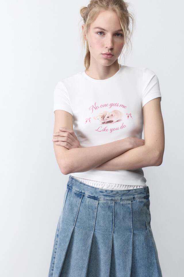 • Укороченная футболка. Подчеркивает талию, идеально смотрится с брюками и юбками с высокой и низкой посадкой.